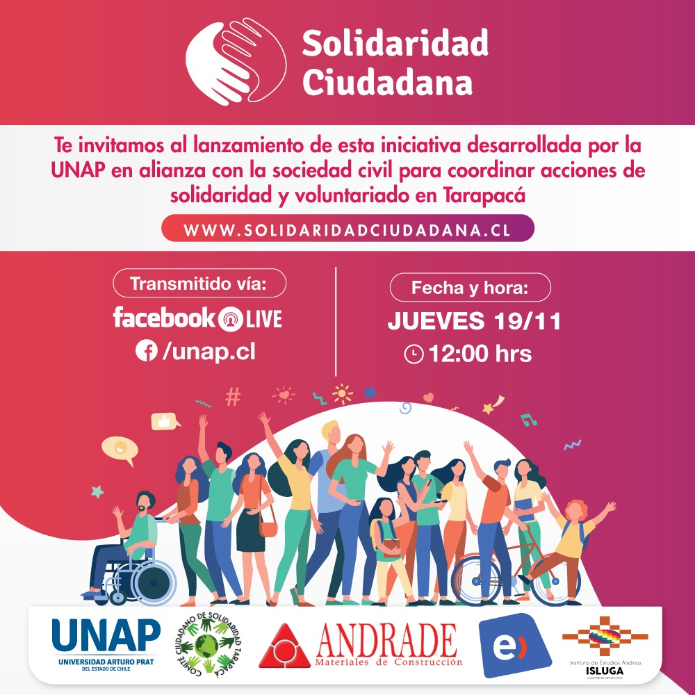 El lanzamiento del portal www.solidaridadciudadana.cl se realizará el próximo jueves 19 a las 12:00 hrs. y será transmitido por Facebook live la UNAP.