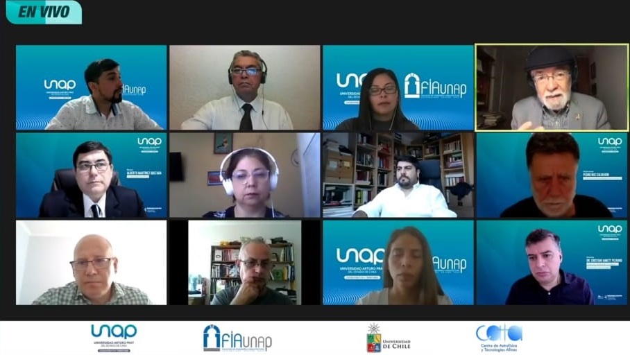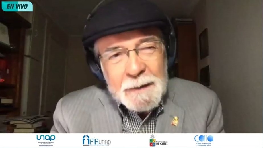 La actividad contó con la presencia del reconocido académico de la Facultad de Ciencias Físicas y Matemáticas de la Universidad de Chile, Premio Nacional de Ciencias Exactas de 1999, astrónomo y astrofísico, doctor José Maza Sancho, quien conversó, de manera remota, con los asistentes conectados por plataforma Zoom y vía redes sociales de la Universidad Arturo Prat.
