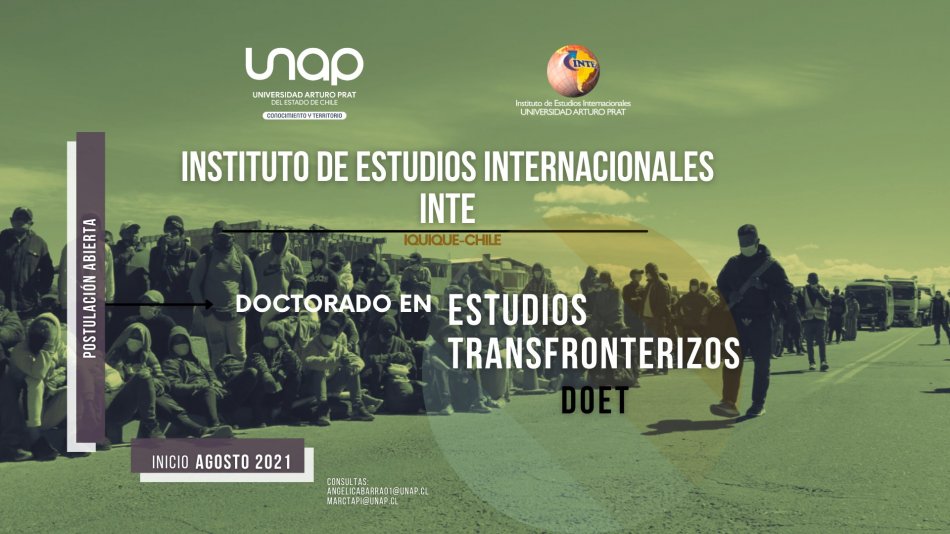 Después de más de un año de trabajo el Instituto de Estudios Internacionales INTE abre el Doctorado en Estudios Transfronterizos (DOET) que se dictará en Iquique a partir del mes de agosto de este año. Luego de haber logrado acreditar el Magíster en Relaciones Internacionales y Estudios Transfronterizos por 5 años ante la Comisión Nacional de Acreditación, el instituto -que cuenta con más de 20 años liderando la producción de conocimiento sobre estudios transfronterizos-, levanta el primer Doctorado de la UNAP. Se trata de un programa que busca formar doctores desde un enfoque interdisciplinar, capaces de llevar a cabo investigaciones originales, de excelencia y de manera autónoma en el ámbito de los estudios transfronterizos. El DOET cuenta con dos líneas de investigación en las cuales el INTE posee una prolífica producción de libros, capítulos, artículos indexados y dos revistas especializadas en los temas del programa, lo que asegura una formación de posgrado de excelencia. Éstas son "Relaciones Internacionales y frontera", basada en un enfoque interdisciplinario y crítico en el estudio de los fenómenos internacionales en contextos de fronteras, así como de los procesos de territorialización que ocurren en los ámbitos transfronterizos. La segunda línea se denomina "Movilidad humana, religión y prácticas culturales transfronterizas" y se aboca al estudio de la movilidad en frontera, las migraciones y el lugar que ocupan los aspectos religiosos y culturales en tanto prácticas sociales que tienen como referente a los límites territoriales.