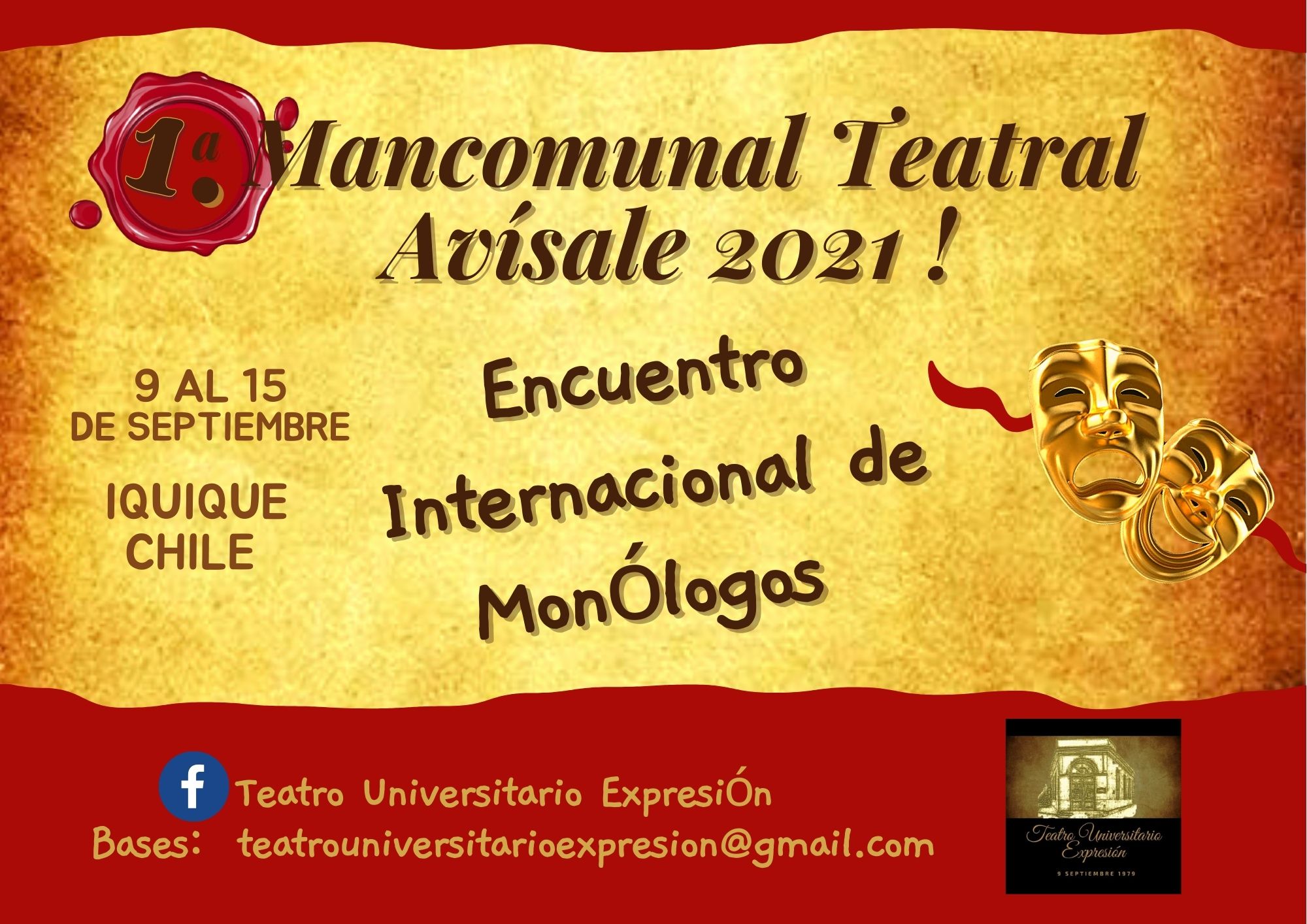 Primera Mancomunal Teatral, avísale, 2021. Encuentro Internacional de Monólogos