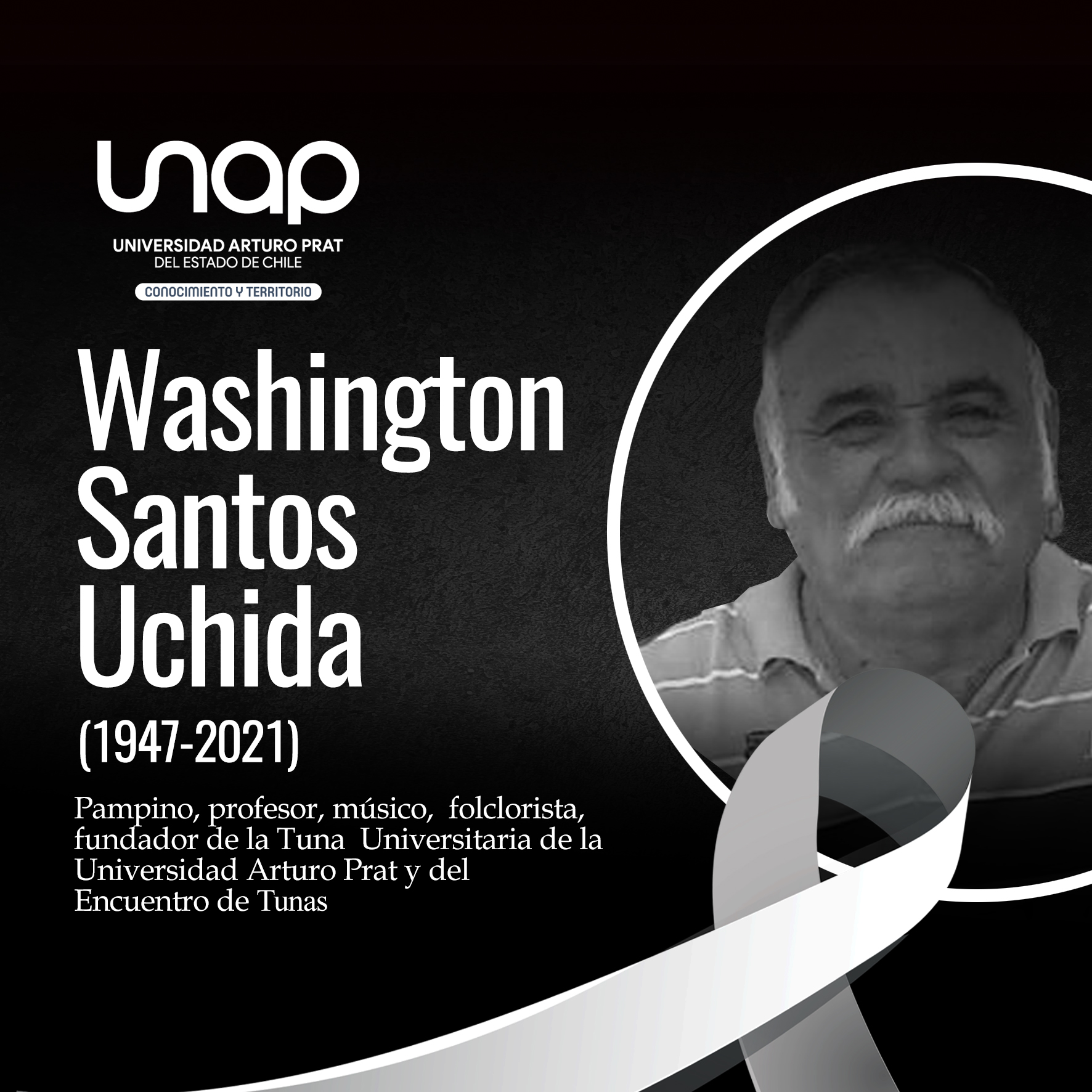 Desde la comunidad académica y estudiantil de la Universidad Arturo Prat, lamentamos profundamente el fallecimiento del profesor, músico y fundador de la Tuna Universitaria de nuestra institución, Washington Santos Uchida, quien falleció a los 73 años.