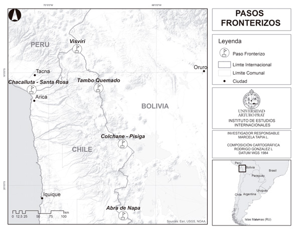 Tapia Ladino, M., Liberona Concha, N., & Contreras Gatica, Y. (2017). El surgimiento de un territorio circulatorio en la frontera chileno-peruana: estudio de las prácticas socio-espaciales fronterizas. Revista de geografía Norte Grande, (66), 117-141. https://dx.doi.org/10.4067/S0718-34022017000100008