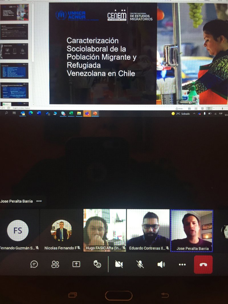 Un total de 70 encuestas on line aplicaron los centros docentes y de vinculación de Antofagasta, Arica, Santiago , Sede Iquique y el Instituto de Estudios Internacionales de la Unap en un trabajo colaborativo en el marco de la realización del “Estudio de Caracterización sociolaboral de la población migrante y refugiada venezolana en Chile” realizado entre la Agencia de la ONU para los Refugiados ACNUR y el Centro Nacional de Estudios Migratorios de la Universidad de Talca (CENEM).