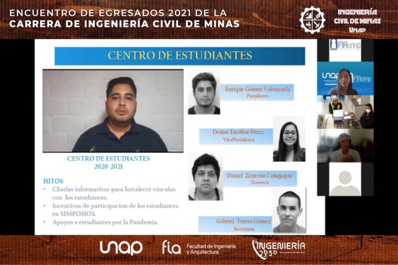 El profesional explicó que esta “fue una actividad realizada de forma mancomunada por el CEAL ICMINAS, Red Alumni ICMIN UNAP y los académicos de la carrera, con apoyo de la Oficina de Egresados y Titulados y moderada por la académica Elizabeth Jara”.