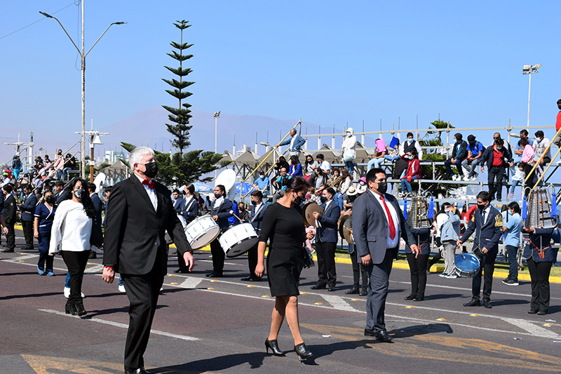 Asimismo, la comunidad universitaria, representada por autoridades de esta Casa de Estudios Superiores, académicas, académicos, administrativas y administrativos, además de estudiantes, desfilaron ante las autoridades regionales.
