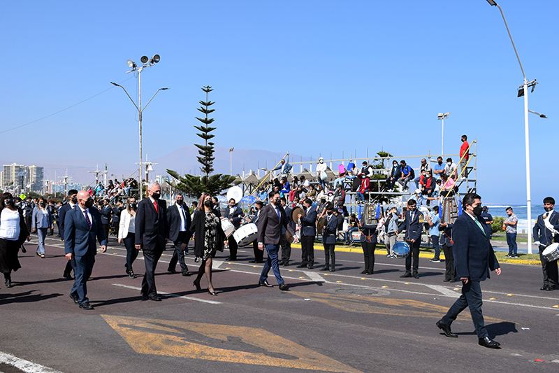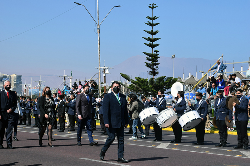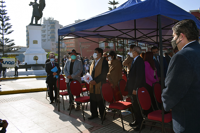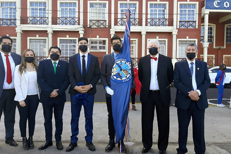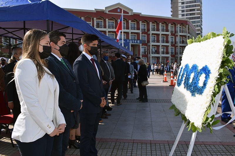 En la ocasión el rector de la UNAP, Alberto Martínez Quezada, acompañado por los estudiantes de la carrera de Pedagogía en Educación Física, Scarlet Martí Raddatz y José Cardemil Milla, al inicio de la ceremonia entregaron la ofrenda floral de la Institución.