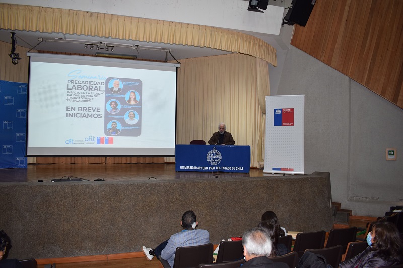 Con la presencia del seremi de Salud, David Valle; el Seremi del Trabajo y Prevención Social, Jaime Vicencio y el director del Departamento de Formación Técnica, Pedro Gómez, la Seremi de Justicia y Derechos Humanos, Camila Castillo, junto a empresarias, empresarios, trabajadoras y trabajadores, se desarrolló el seminario “Precariedad Laboral, Impacto de la Salud y Calidad de Vida de las trabajadoras y Trabajadores” en la Universidad Arturo Prat.
