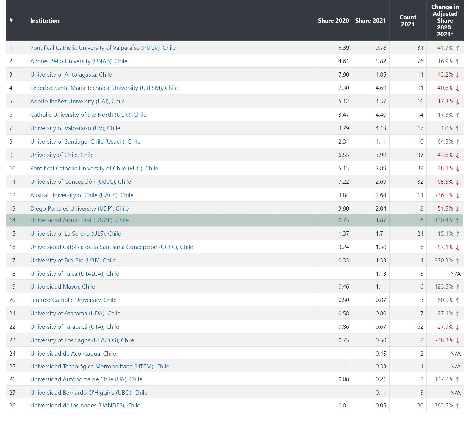 Si quieres conocer algo más de este ranking ingresa aquí https://www.natureindex.com/annual-tables/2022/institution/academic/physical-sciences/countries-Chile