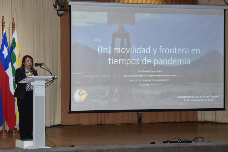 Con la ponencia titulada (in) Movilidad y Frontera en tiempos de pandemia en Tarapacá, la directora del Doctorado en Estudios Transfronterizos DOET del Instituto de Estudios Internacionales de la Universidad Arturo Prat, Dra. Marcela Tapia Ladino, participó en el conversatorio “Migración en Tarapacá” organizado por el Servicio Jesuita a Migrantes SJM. La instancia se enmarcó en la conmemoración del primer aniversario del desalojo masivo a personas y familias migrantes en Plaza Brasil de Iquique, Chile.
