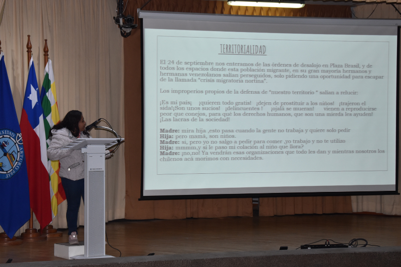 En su exposición la académica del INTE abordó cuatro elementos de análisis: 1) Fronteras y Fronterización previo a la pandemia 2) La Pandemia del COVID-19, (In) Movilidades-Migraciones y desplazamiento forzado 3) Tarapacá y Crisis Humanitaria 4) A un año del desalojo: Desafíos futuros.