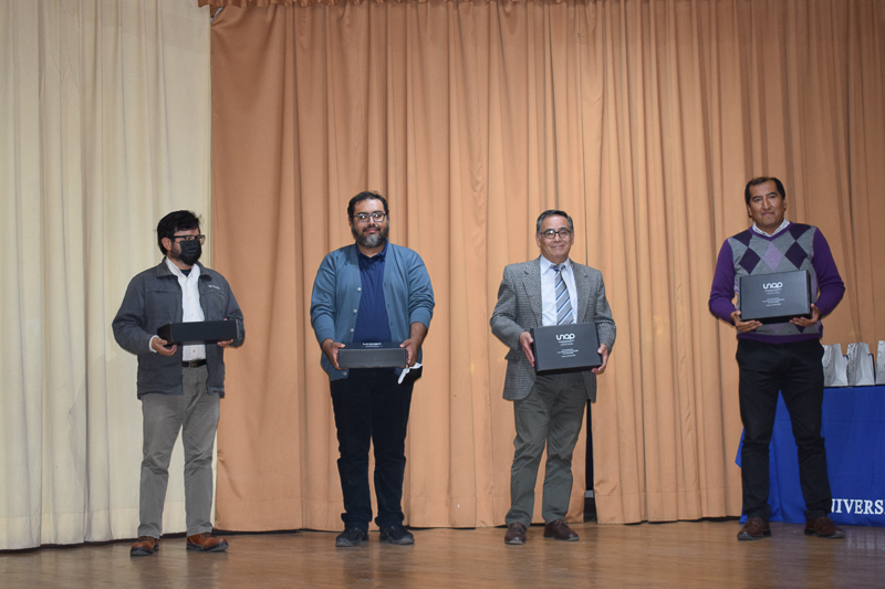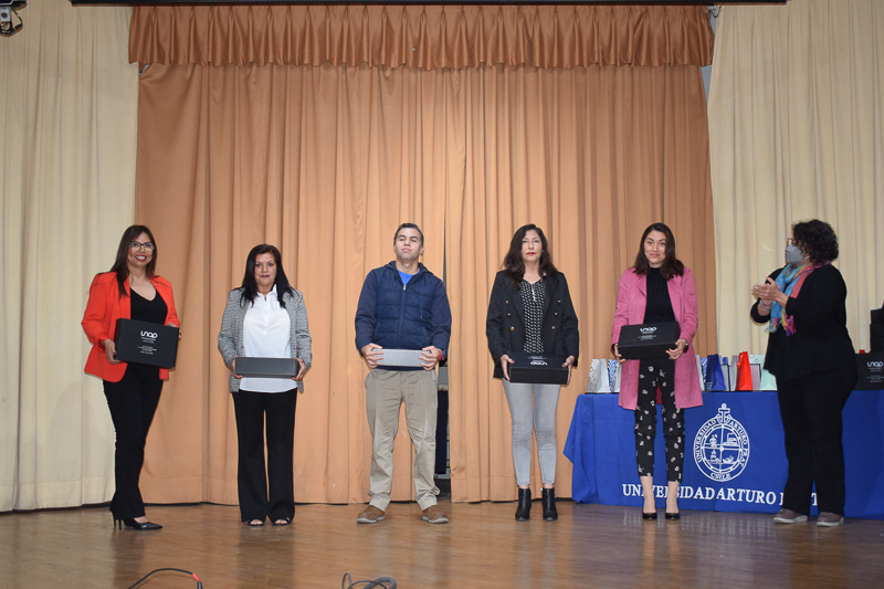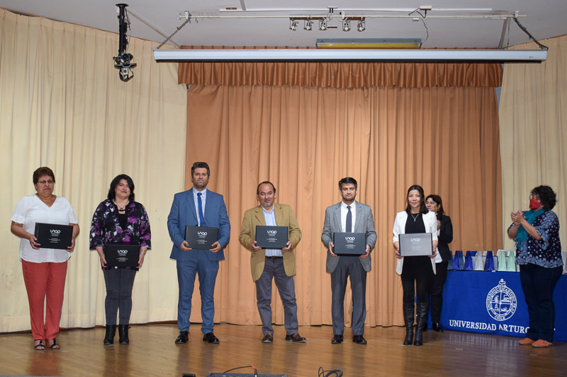 Durante la ceremonia el rector recordó a las y los funcionarios y jubilados fallecidos que también entregaron su contribución a la UNAP. "Recordemos a Lilian Leal Cariaga, Profesional de la Sede Victoria, que falleció el 2020 y a Álvaro Riquelme Campos, Auxiliar de Portería del CDV Santiago. El 2021 tuvimos que lamentar la pérdida de Anibaldo Carvajal Echeverría, Auxiliar de Portería en Iquique; de Candy Silva Silva, Asistente Social del Bienestar de Personal y Guillermo Martínez Salinas, Jefe de Docencia del CDV Antofagasta.