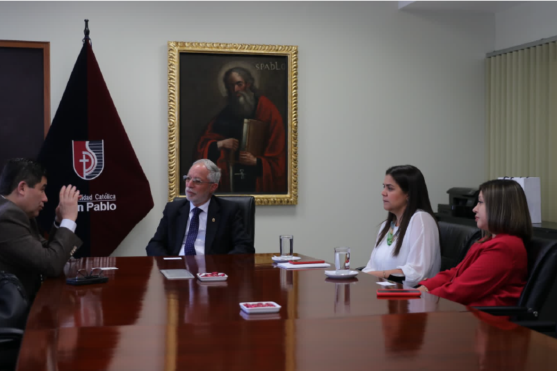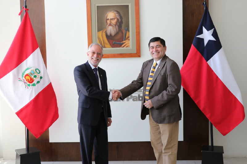 Por otra parte, el Rector sostuvo reuniones con otras instituciones de educación superior como la Universidad Católica de San Pablo, representado por su Rector, Alonso Quintanilla y la Directora de Relaciones Internacionales y Cooperación, María Alejandra Maldonado y Johana Cabel, Coordinadora de movilidad académica de la misma área, exalumna de la carrera de Ingeniería Civil UNAP que estudió mediante el convenio CRISCOS en Iquique.