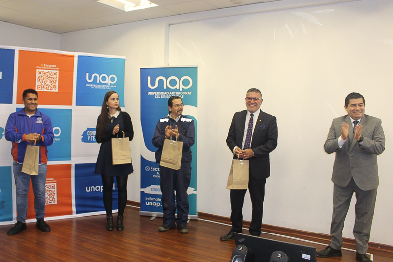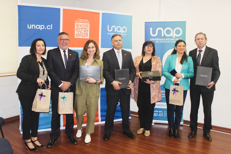 Felicitó, además, a quienes desde hace 5 años forman parte de nuestra comunidad unapina, y que con su energía impregnan todo nuestro quehacer universitario. A Manuel Carvajal Navarro; Humberto Dilla Alfonso; Luis Orellana Urtubia; Eduardo Valencia Herrera; Priscilla Albornoz Gálvez; Nataly Borzone Tapia; Francisco Huentecura Paillán; Raúl Romero Vásquez.