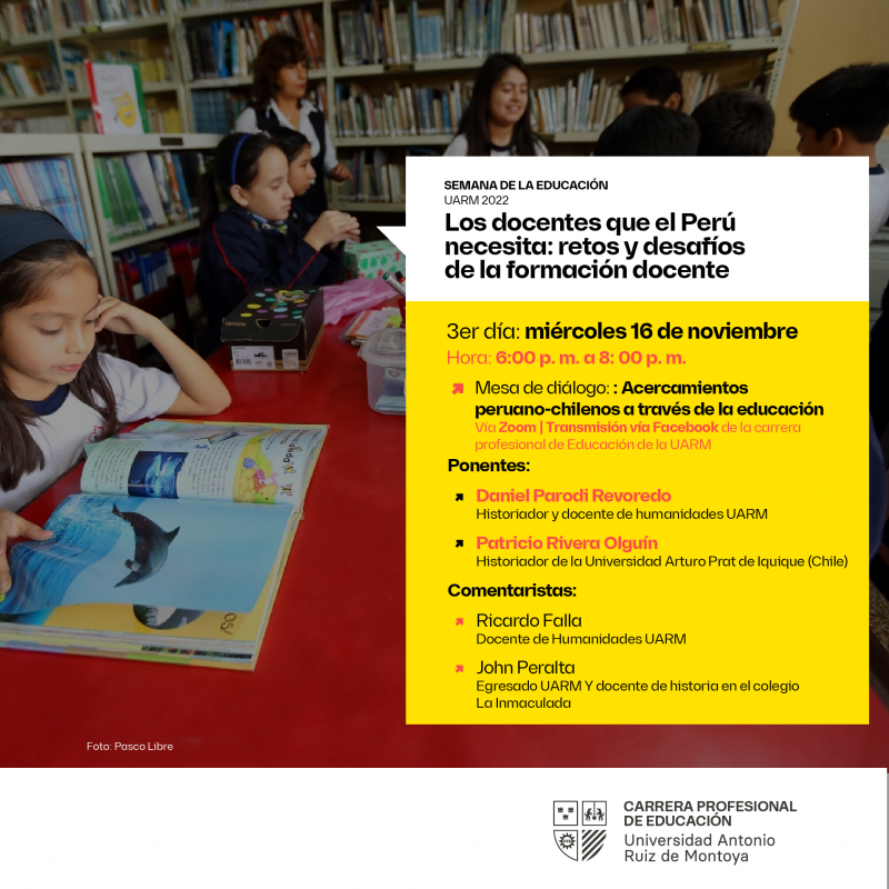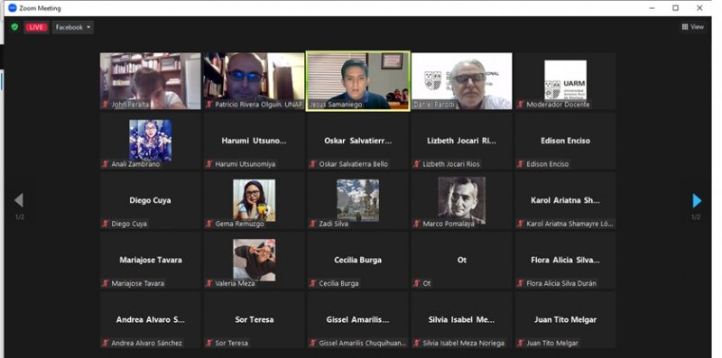 La actividad reunió vía plataforma Zoom a aproximadamente 80 estudiantes y docentes de la referida facultad la cual organizó este evento en el marco de la Semana de la Educación. Este también contó con la intervención del historiador y docente de dicha universidad peruana, Daniel Parodi Revoredo, con quien el académico unapino dialogó en torno al tema que los convocó.