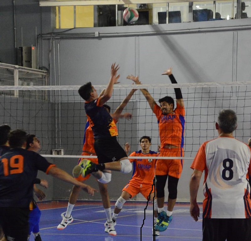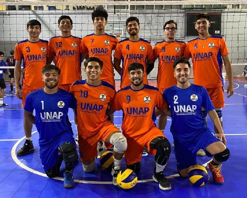 La selección de vóleibol varones de la UNAP está integrada por: Benjamín Cardona Barba, Bruno Sebastián Lucero Suazo, Christian Alexander Hidalgo Zúñiga, Javier Alejandro Castillo Castillo, Javier Alejandro Navarrete Ortiz, Johan Ignacio Lillo Lillo, Luis Alejandro Fernández Escudero, Matías Ignacio Cortez Velásquez, Oscar Adrián Núñez Torrez, Sebastián Ignacio Figueroa Osorio, e Ingerman Antón Donoso Lučić.