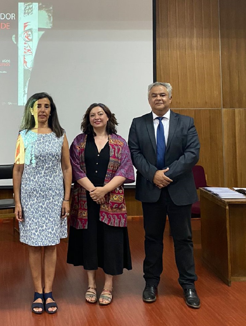 Dra. Marcela Ahumada, directora ejecutiva de la Fundación Salvador Allende; Dra. Rosa Basaure, académica Departamento de Literatura y Lingüística USACH; Evadil Ayala, director CDV Santiago de la UNAP.