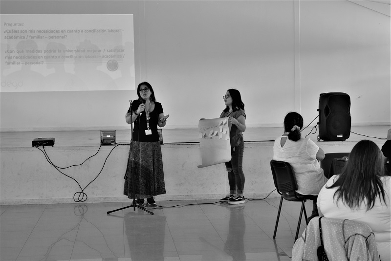 En la instancia —la primera impulsada por la Dirección de Equidad— se abordaron temáticas de conciliación laboral, familiar y personal mediante videos. Luego la asamblea se dividió en grupos para poder responder dos preguntas principales, donde mediante una dinámica las participantes escribieron ideas y propuestas, las que se expusieron en una plenaria al final de la sesión.