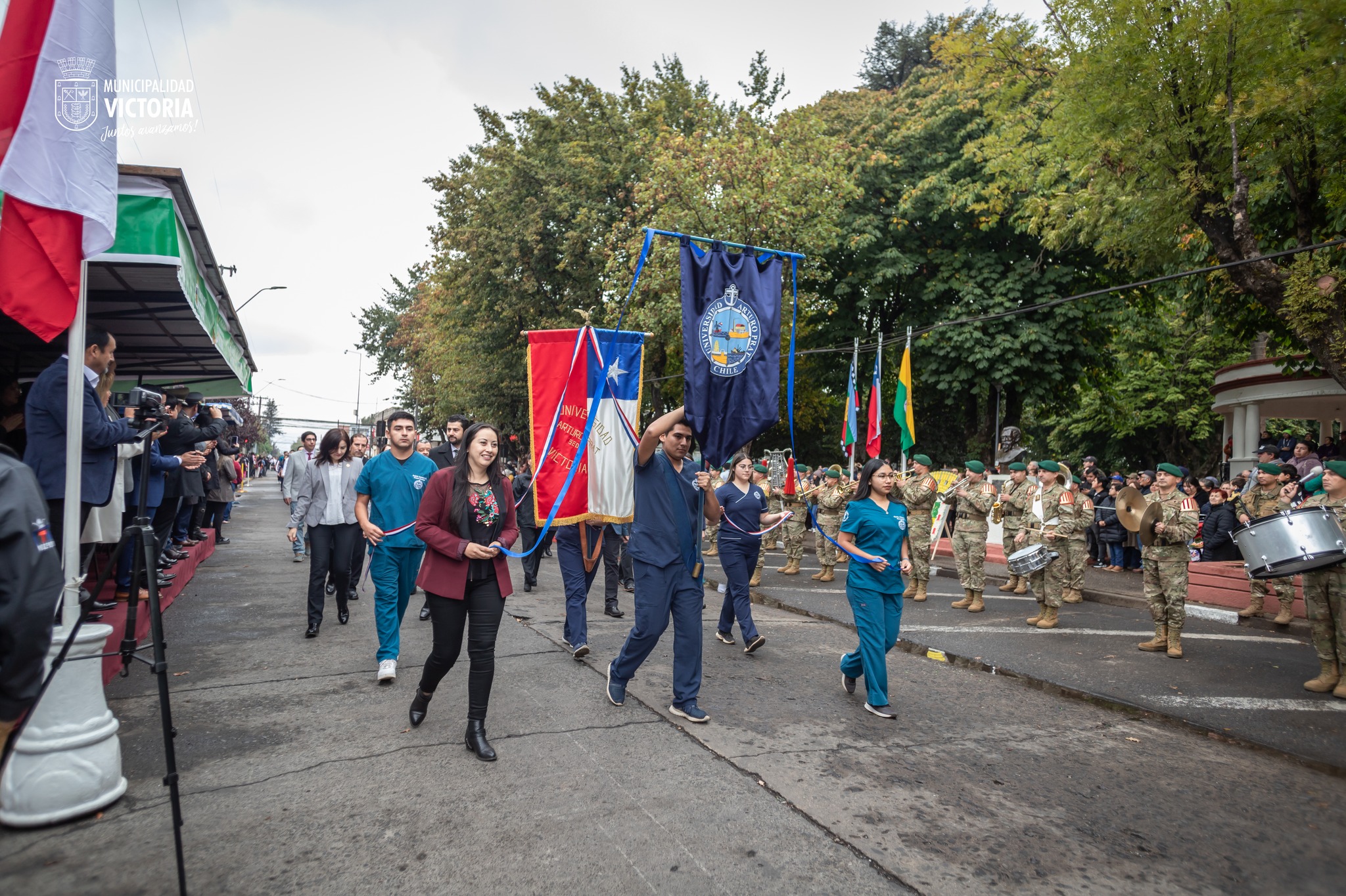 Tras dos años de ausencia por la pandemia, las calles de la ciudad de Victoria volvieron a llenarse de vida para celebrar el desfile por los 142 años de existencia de la comuna en la Plaza de Armas Manuel Balmaceda, instancia que nuevamente contó con la ya tradicional participación de la Universidad Arturo Prat.