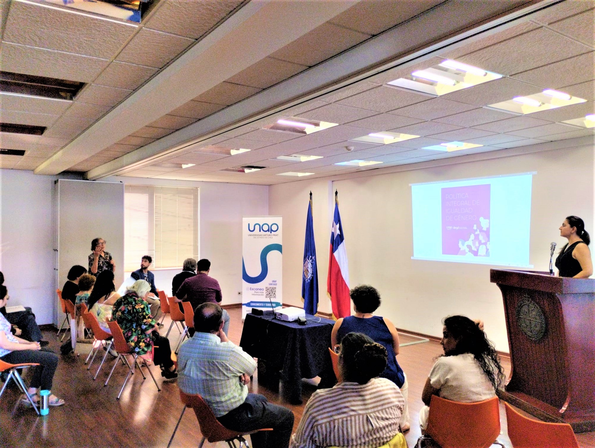 Como parte del compromiso de la Institución por avanzar hacia la equidad entre los géneros y transversalizar ese enfoque en todos los ámbitos de la comunidad universitaria, en el Centro Docente de Vinculación (CDV) Santiago fue presentada oficialmente la nueva Política Integral de Igualdad de Género de la Universidad Arturo Prat (UNAP).