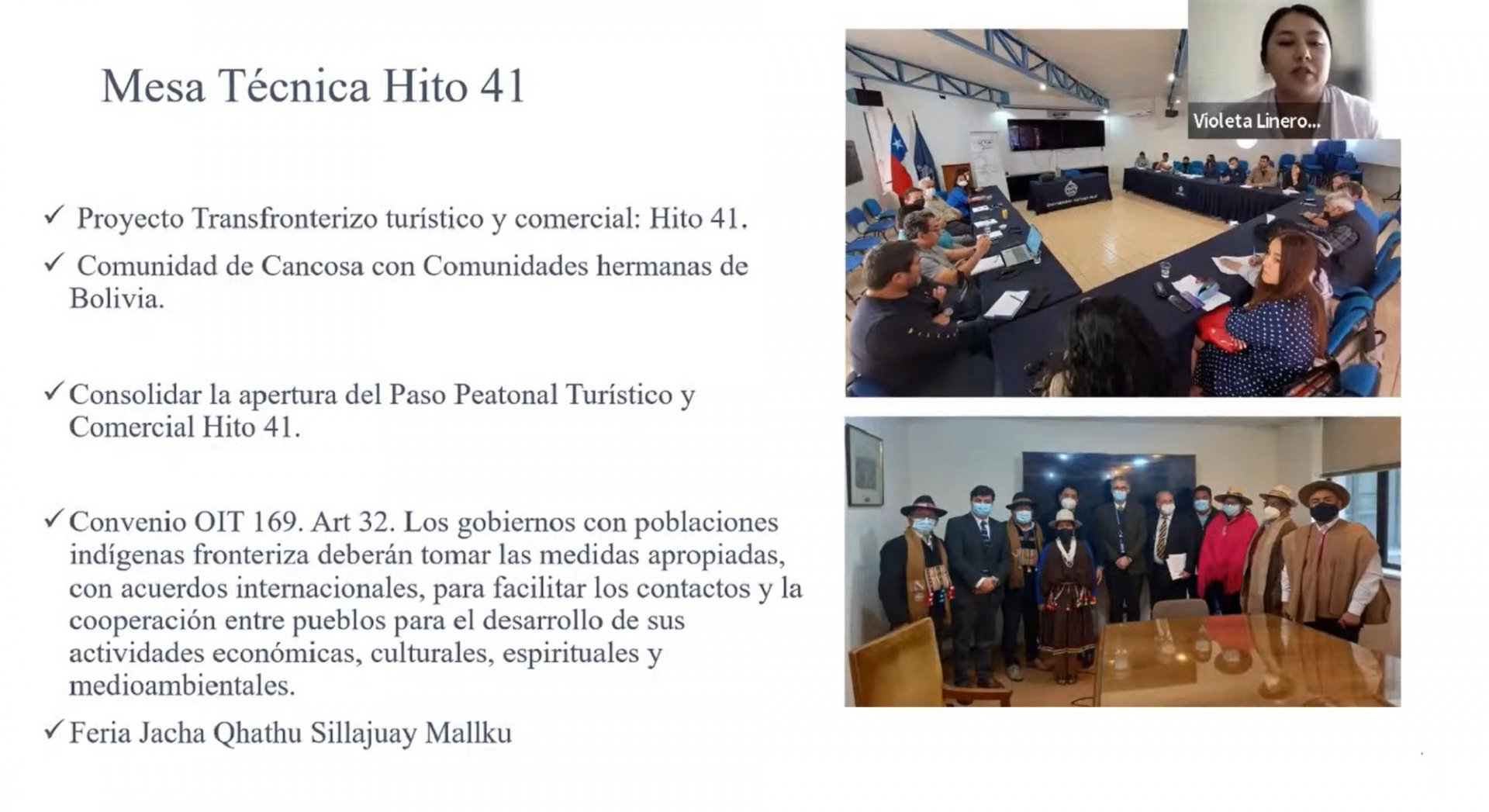 En representación de la UNAP expuso Violeta Lineros González, gestora territorial OFIIT —oficina dependiente de la Dirección General de Vinculación con el Medio y Relaciones Internacionales de la UNAP— quien expuso en detalle el trabajo realizado por esa unidad en el desarrollo territorial transfronterizo, según los objetivos institucionales de la Universidad.