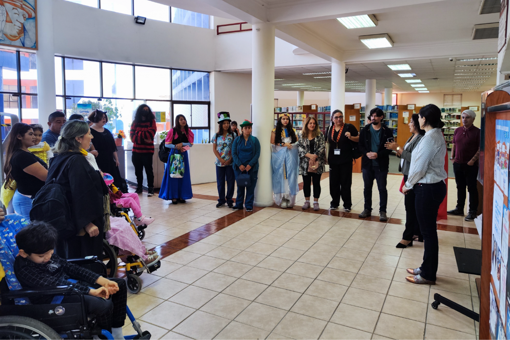 Es en ese contexto, que tras coordinar con los miembros del Aula Intrahospitalaria San Sebastian, el personal de la Biblioteca recibió a las niñas y niños acompañándolos en el recorrido por las instalaciones, oportunidad que sirvió para que respondieran a sus diversas consultas en relación al mundo de los libros y de la vida universitaria.