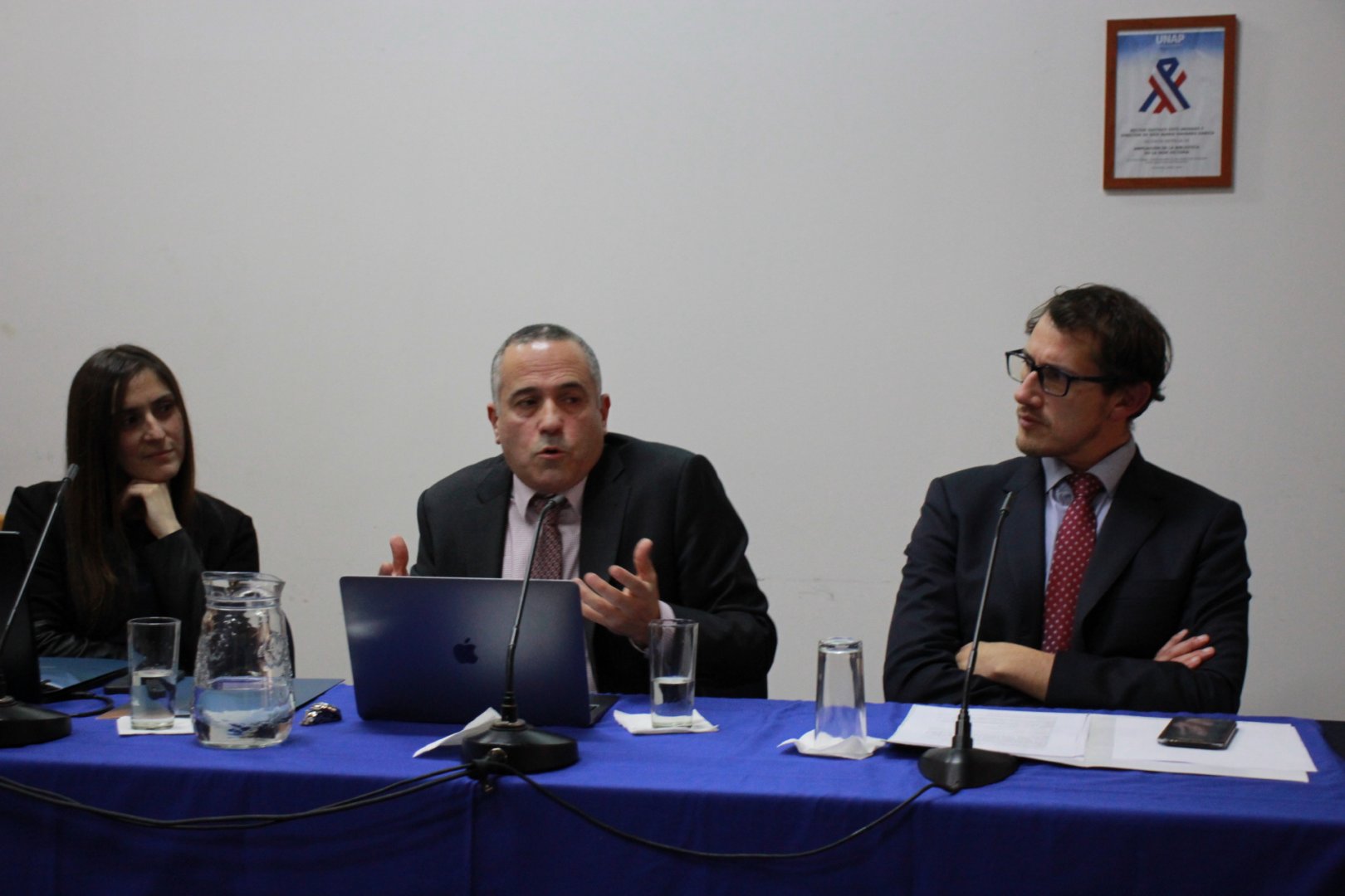 Efectuado en la Sala de Extensión de Biblioteca, y transmitido por redes sociales, el relevante evento fue iniciado con palabras de bienvenida de la Docente Magdalena Saavedra, en calidad de Jefa Subrogante de la Unidad de Docencia y en representación del Director, Juan Pablo López; continuando con la moderación a cargo del Académico Dr. Miguel Alarcón, quien presentó a los panelistas Boonie Guidotti, de la UNAP; Claudia Bahamondes, de la Universidad Diego Portales; Jaime Alcalde, de la Pontificia Universidad Católica de Chile; y Pedro Hidalgo, de la Universidad de Concepción.