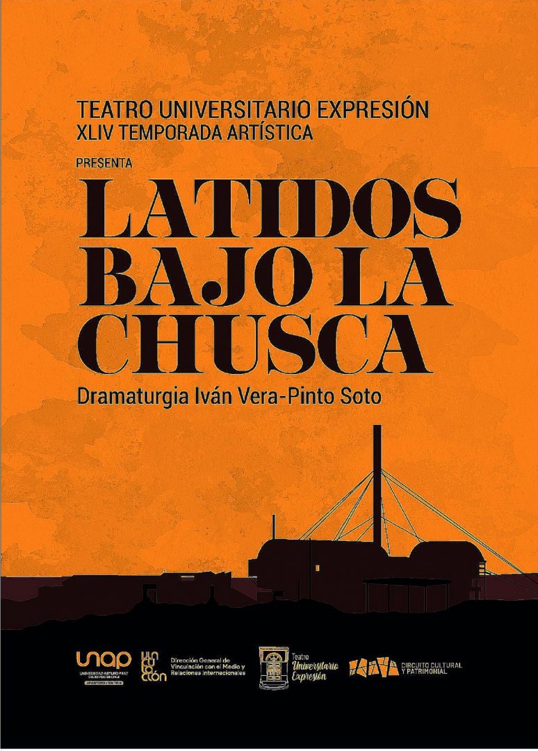 El Teatro Universitario Expresión, dependiente de la Dirección General de Vinculación de la Universidad Arturo Prat (UNAP), en el marco de su XLIV Temporada Artística, el viernes 28, a las 21.00 y el sábado 29, a las 20.00 horas, llevará acabo el estreno la obra “Latidos bajo la chusca”, del dramaturgo iquiqueño Iván Vera-Pinto Soto, en la Sala Veteranos del 79, Zegers 150.