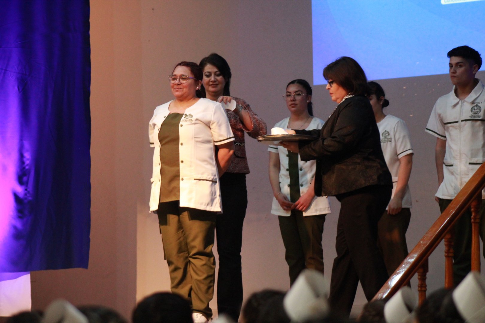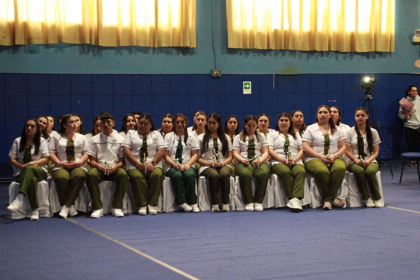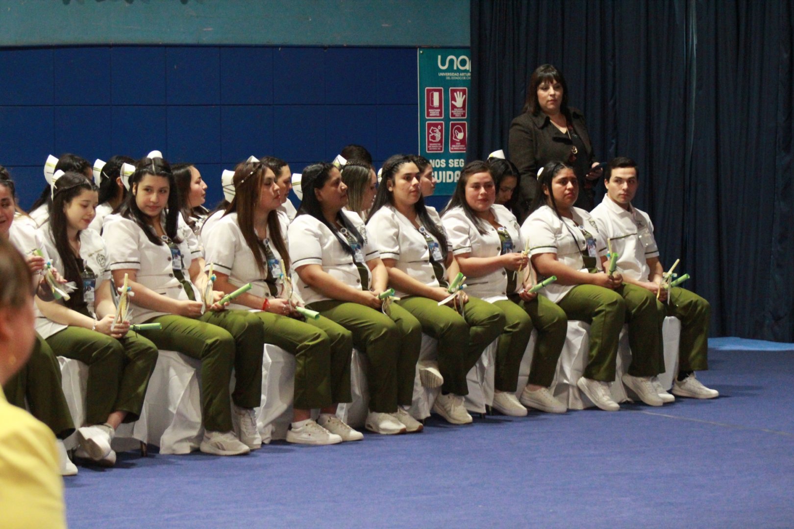 Siguiendo con la programación, vino el turno del número artístico, con los estudiantes de último año uniéndose para cantar “Color Esperanza”; mientras que en la tarde, los TNS Thiare Matamala y Carlos Pérez deleitaron a los presentes con dos pies de cueca; llegando así a la parte central del evento, en donde los 50 técnicos en Enfermería de 2021 recibieron en el escenario la piocha y la toca –esta última, para las mujeres- de parte de sus académicos, replicando el mismo acto con los 70 universitarios de 2023.