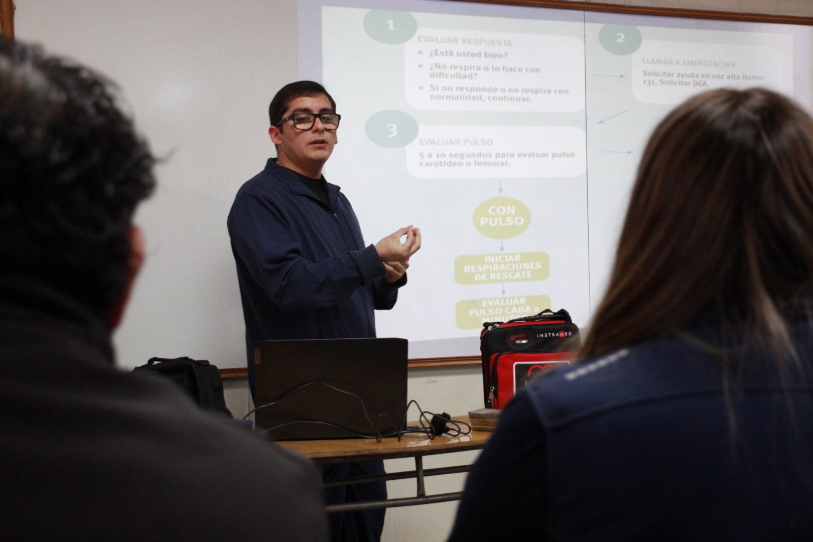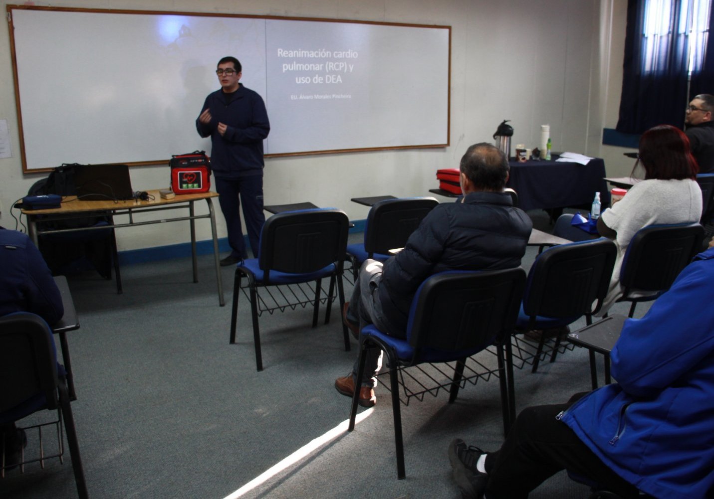 Iniciado con palabras de bienvenida de Cristian Córdova, Encargado de la Zona Centro Sur de Prevención de Riesgo, el curso consistió en un primer bloque teórico, dictado por el Enfermero Universitario y ex unapino Álvaro Morales, Instructor de RCP y DEA, quien abordó diversos aspectos a considerar para la concurrencia, conformada por académicos, administrativos y jefes de áreas y carreras en general.