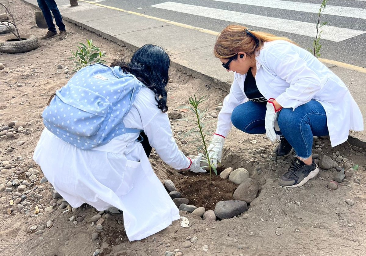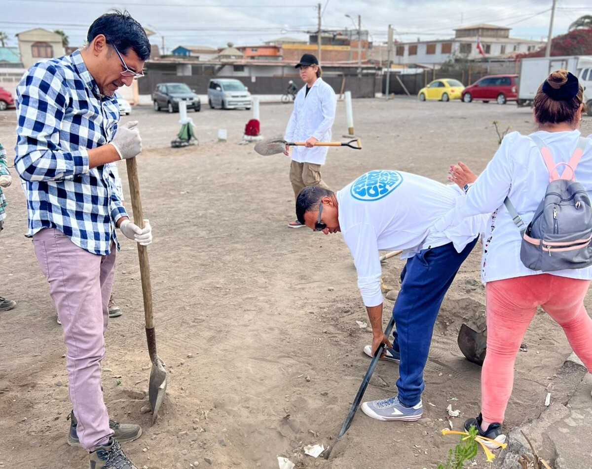 Por su parte, los estudiantes y docentes de la carrera Técnico Agrícola de la UNAP Arica se sumaron con entusiasmo a la tarea, trabajando en la preparación del suelo y llevando a cabo el trasplante de los arbustos.
