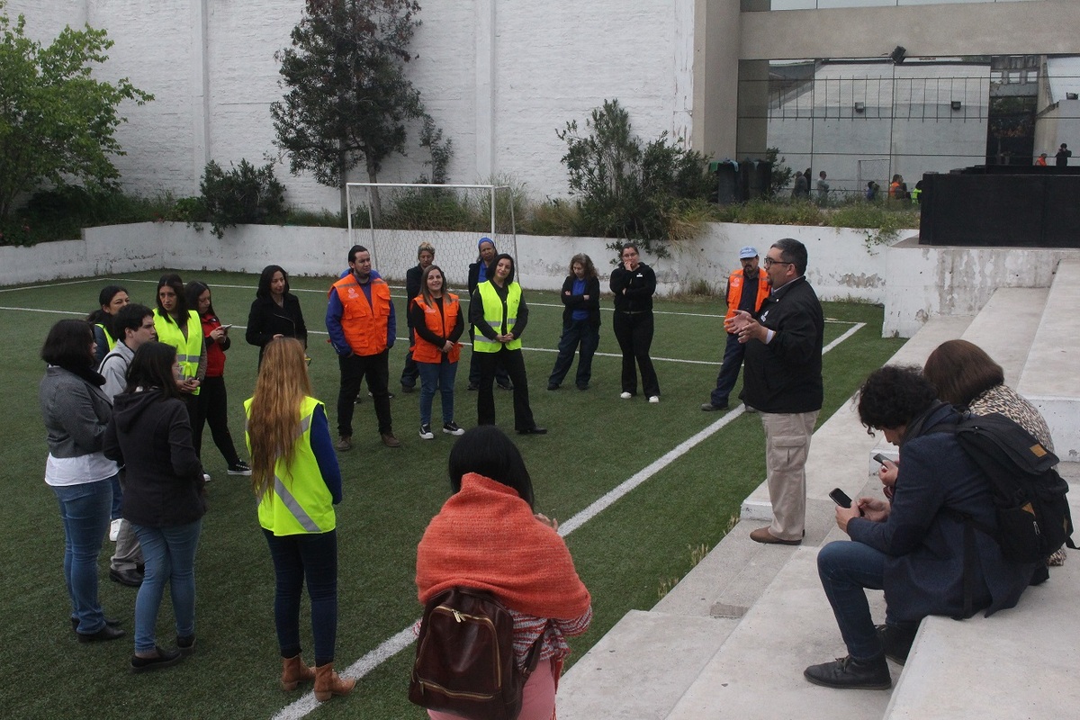 En este sitio, los funcionarios y externos a la universidad esperaron hasta que los encargados de seguridad dieran el visto bueno para el término de la actividad. Inmediatamente después, el asesor en Prevención de Riesgos de la sede Victoria, Cristian Córdova, entregó una serie de instrucciones y explicó el procedimiento para abordar catástrofes y evitar accidentes.