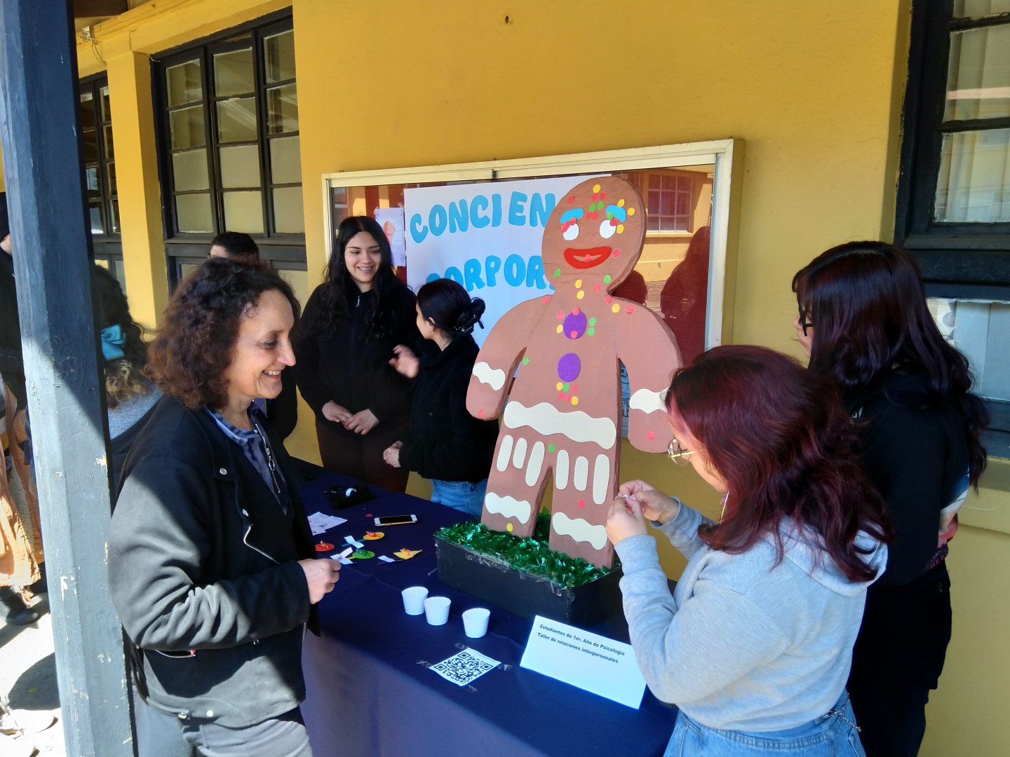 “Fue muy entretenido”, afirmó Dalila Salazar; “ha salido todo muy bonito, ya que nos preparamos mucho para esta actividad y todo fue mejor de lo que esperaba. Estuvimos en clases haciendo lluvia de ideas para que esto saliera bien y cada uno de los equipos de los stands se preocupó de hacer algo llamativo para el público”, aseguró la joven del grupo de “conciencia corporal”, quienes construyeron al conocido Hombre de Jengibre para que las personas pudieran identificar las zonas del cuerpo en donde sienten más estrés.