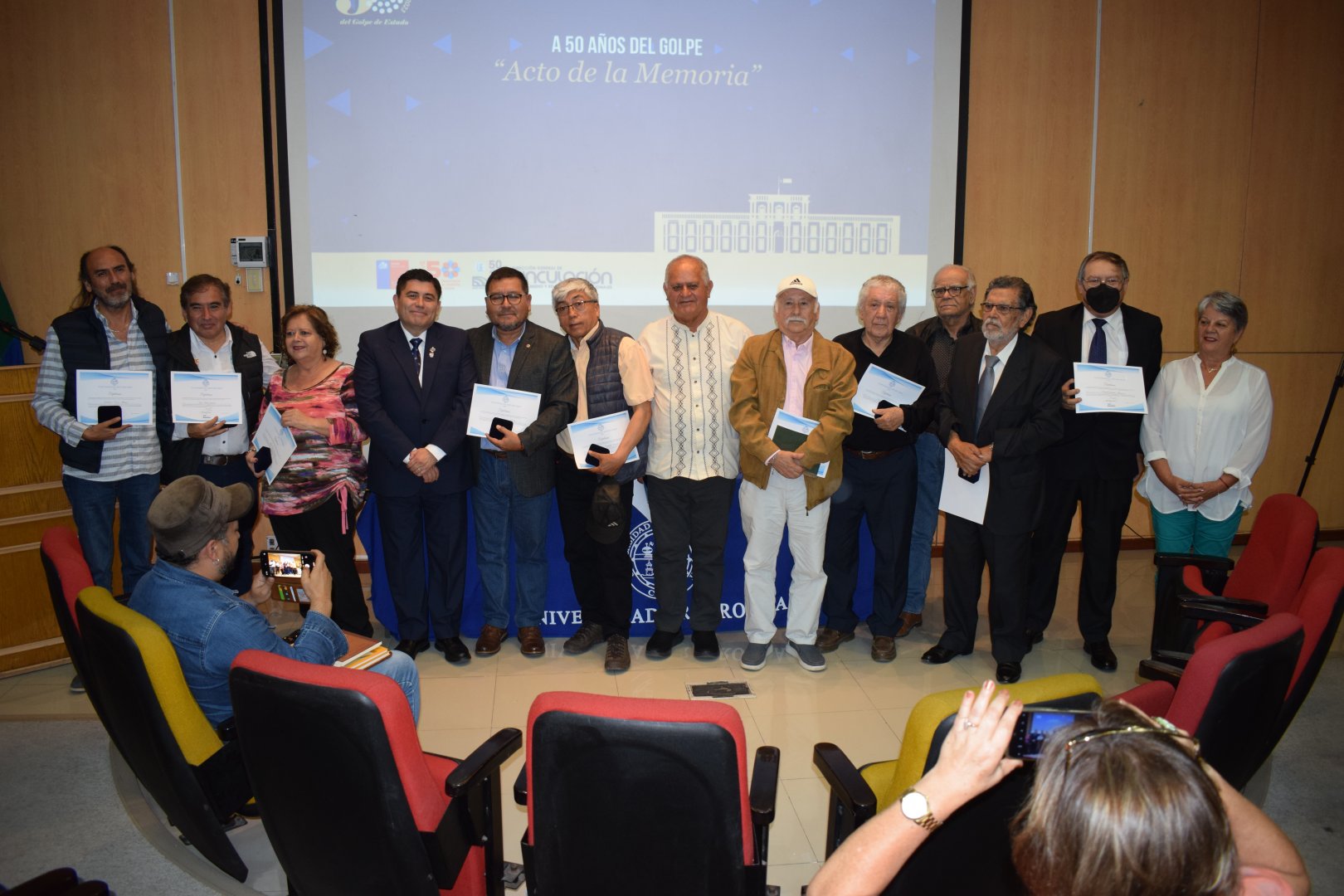 Como parte del aniversario institucional —y además en el contexto de las instancias de reflexión histórica por los 50 años del Golpe de Estado de 1973, que son organizadas por el Consorcio de Universidades del Estado de Chile (CUECH)— la UNAP realizó el evento denominado “Acto de la Memoria” en la Casa Central.