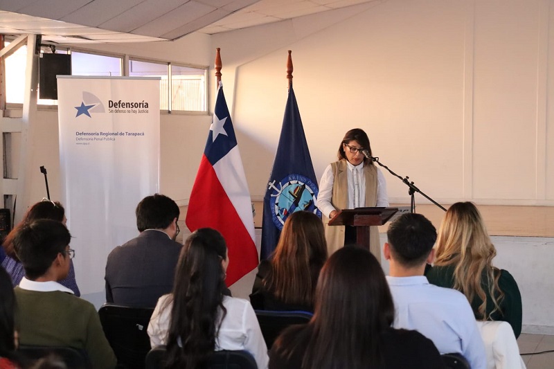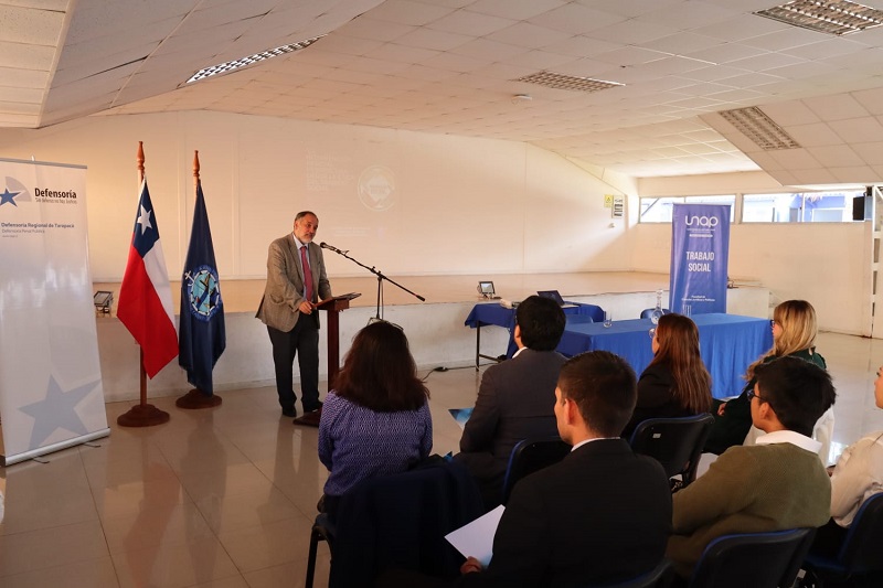 La iniciativa, dirigida al mundo académico y estudiantes, congregó a especialista en esta temática tanto del Servicio Médico Legal (SML) de Tarapacá como de la Defensoría Penal Pública. Es así como estuvo presente Marcelo Lazcano, director Regional del SML quién habló a las y los asistentes respecto al rol que cumple en la actualidad su institución. Asimismo, Alessandra Francino, Trabajadora Social, expuso en relación al papel del Trabajador Social Forense y, finalmente, Karina Reyes, Jefa de la Unidad de Estudios de la Defensoría Penal Pública, quien junto a la abogada defensora de migrantes, Nicole Acuña, e Ignacio Olivares, Trabajador Social de la Defensoría, dieron a conocer la realidad de su profesión en este organismo.
