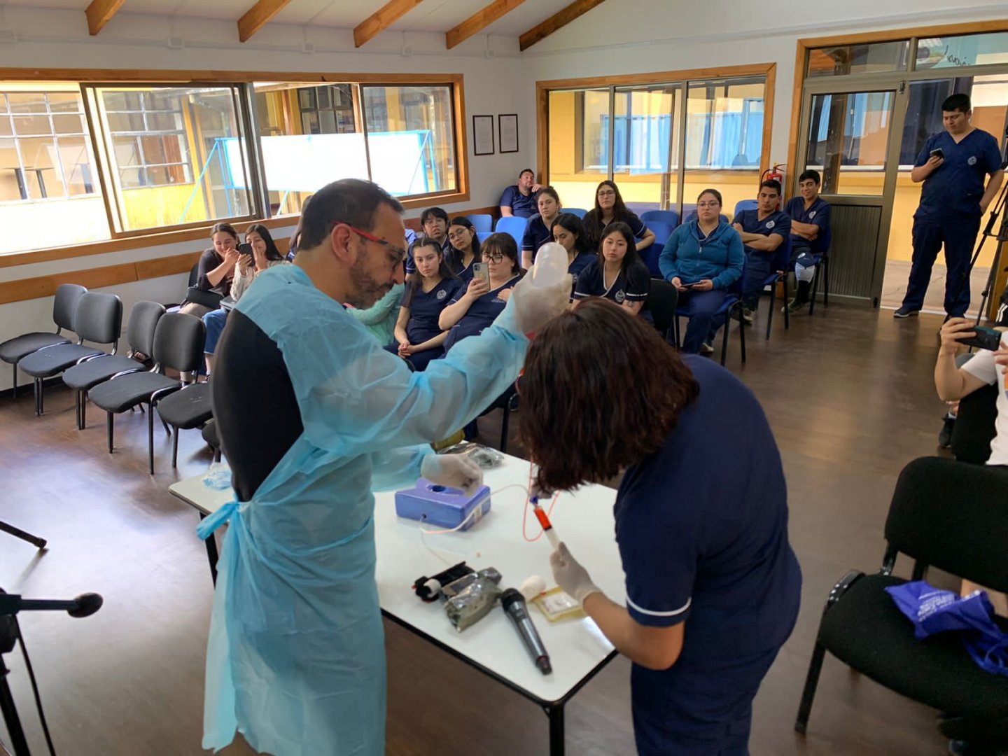 El segundo día continuó con las ponencias “Gestión del Cuidado en Intervención de Vía Aérea en Unidades de Emergencia y Prehospitalaria”, dictada por el Enfermero e Instructor de Soporte vital en Trauma Prehospitalario (PHTLS), Luis Saldivia; “Gestión del Cuidado en el uso y Experiencia Farmacológica de la Ketamina en contexto Prehospitalario”, de Rodrigo Polanco, Diplomado en Manejo de Desastres por la Universidad Santo Tomás; “Gestión del Cuidado en Enfermería en Traslados Aéreos” por Carlos Vizcaya, con veinte años de labores en Urgencia, docencia y autor del libro “Enfermería en Vuelo”; y “Gestión del Cuidado en pacientes politraumatizados y Control de Hemorragia”, del Enfermero Prehospitalario del SAMU Biobío, Fabián Belmar.