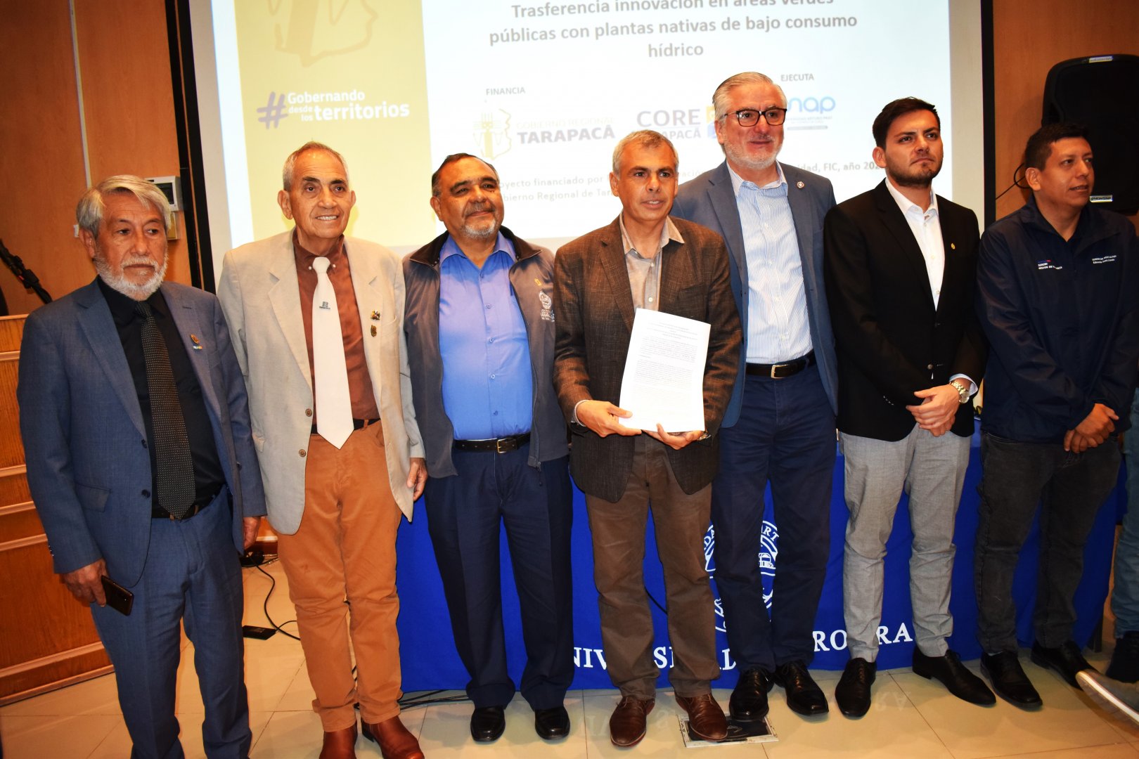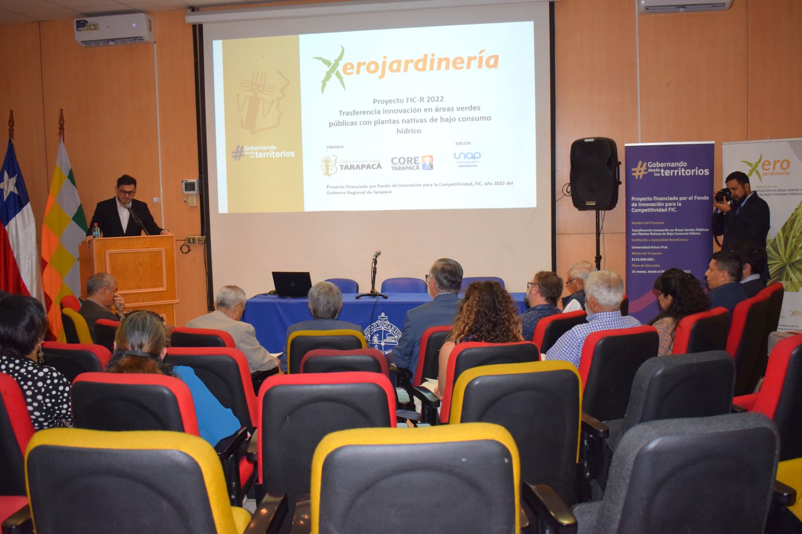 En la presentación del proyecto FIC “Transferencia Innovación en Áreas Verdes Públicas con Plantas Nativas de Bajo Consumo Hídrico”, también participaron: el seremi de Agricultura, Eduardo Justo Cruces; representantes de la Gobernación de Tarapacá, de la Fundación para la Innovación Agraria (FIA), consejeros regionales, integrantes de juntas de vecinos de Iquique, directivos de la UNAP, y el decano de la Facultad de Recursos Naturales Renovables, Mario Aguilar; junto a docentes, funcionarios, funcionarias y estudiantes de la Universidad.