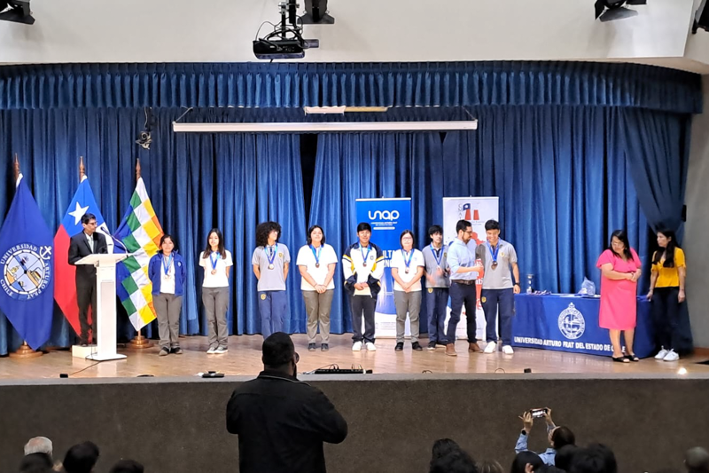 Se premió así a: José Ugarte del Colegio Lirima por su medalla de oro; Paz Vásquez de la Academia Tarapacá por su medalla de plata; Mathías Mérida del Colegio Bajo Molle y Diya Ramshan del Colegio Lirima por sus menciones honrosas.