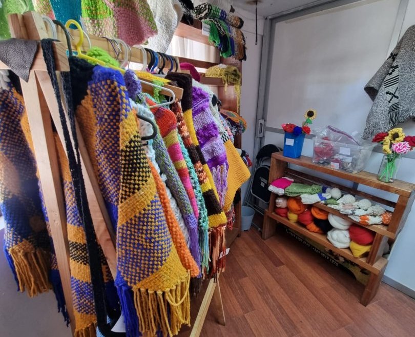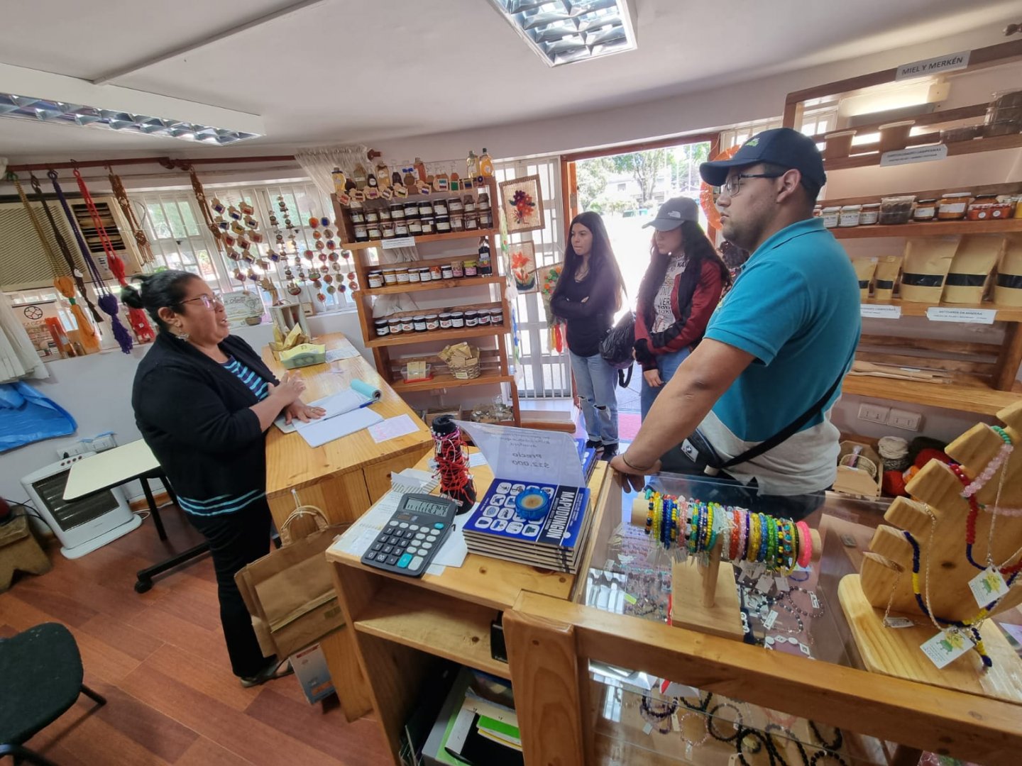 Posteriormente, el grupo de universitarios concurrió a la Plaza de Armas de Angol, al punto de venta de la Agrupación de Mujeres Kimün Ruka, especializada en artesanía y producción Mapuche, en donde conocieron acerca de su historia por parte de su Dirigenta Maritza Calbún, quien además le mostró todos los productos, desde huevos de gallina araucana, telares mapuche, mermeladas y aceites esenciales, hasta lanas teñidas de forma natural.