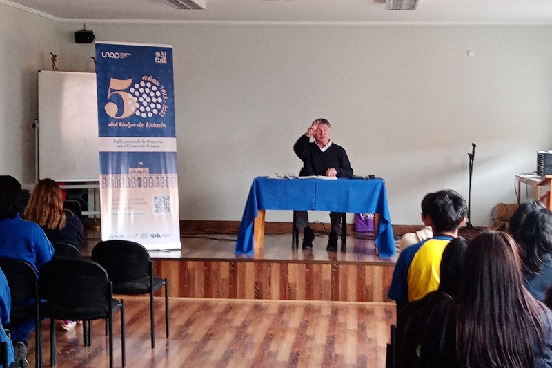 Conmemorando 50 años del Golpe Militar, historiador chileno dictó charla a estudiantes de enseñanza media en Alto Hospicio y a universitarios