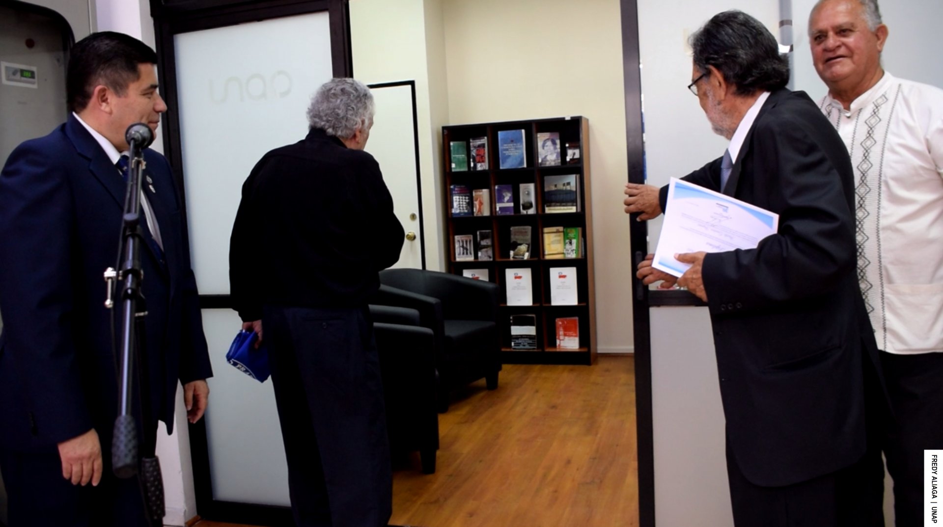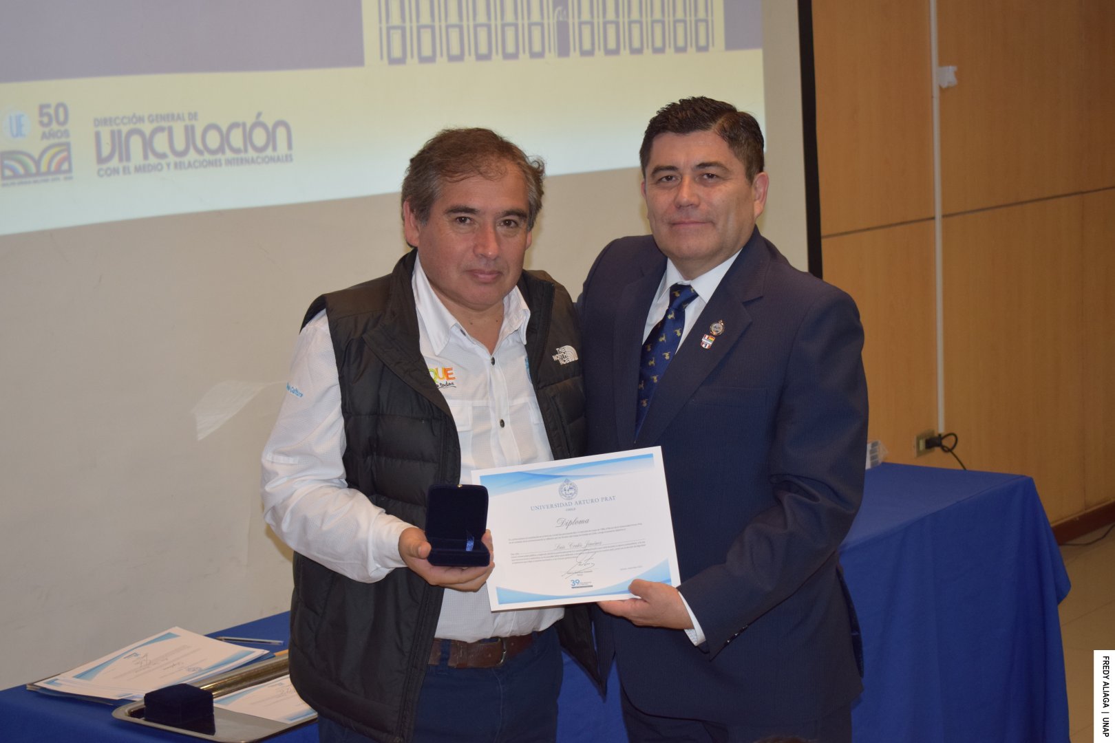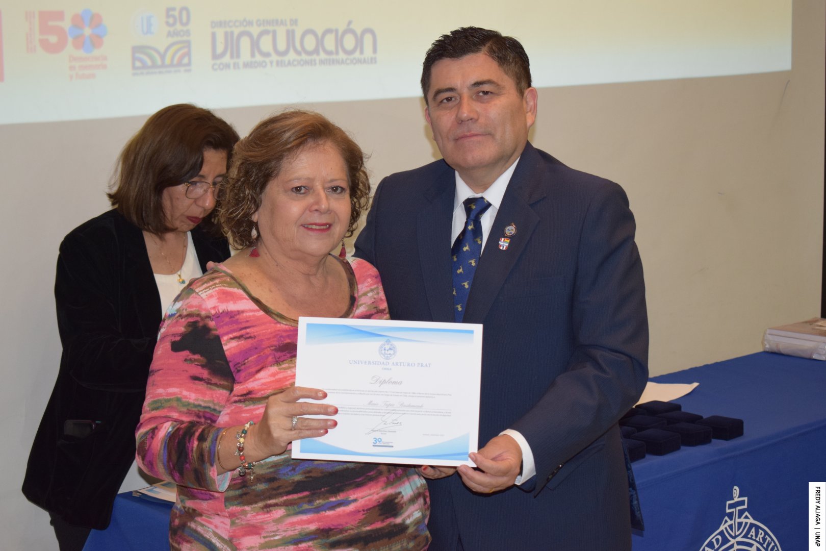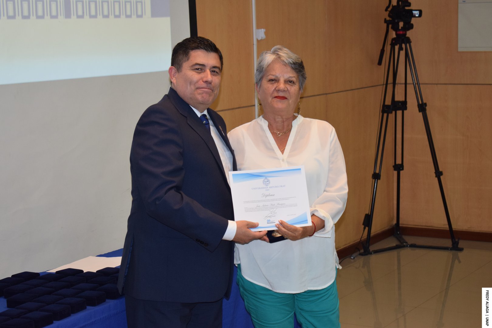 Además, como una manera de testimoniar y reconocer institucionalmente lo ocurrido y que afectó las vidas de cada víctima, la UNAP realizó otra emotiva ceremonia en la sala Óscar Hahn de la Casa Central, en Iquique. En la instancia, el rector entregó a cada afectado y afectada una medalla y un diploma de memoria histórica.
