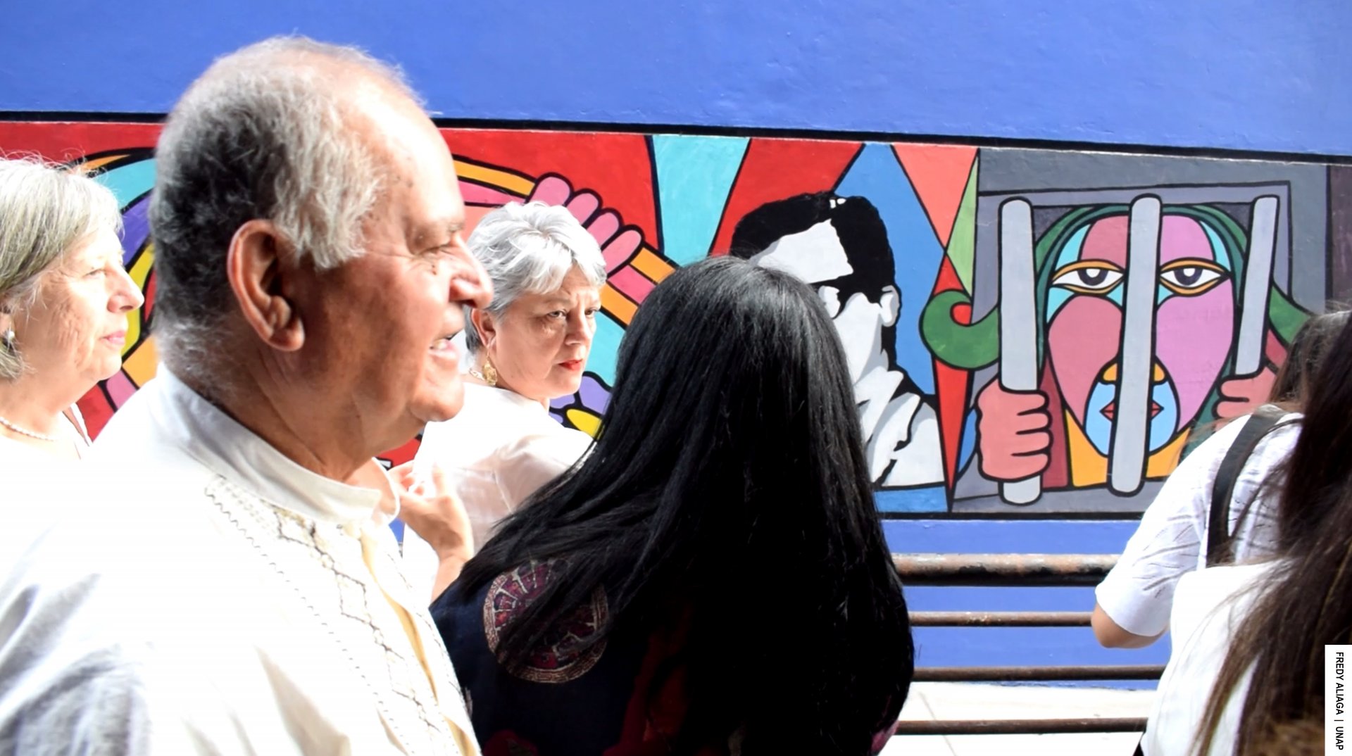 La actividad incluyó una visita al mural que recuerda a las víctimas de violaciones a los Derechos Humanos y que fue restaurado recientemente por la Federación de Estudiantes FEUNAP, a un costado del edificio de la Facultad de Ingeniería y Arquitectura, en la Casa Central.