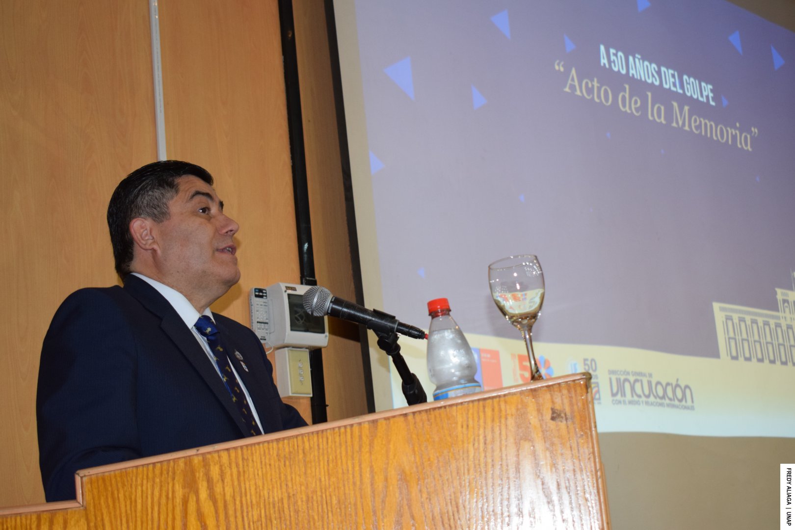 “En nuestra joven universidad, desde que fuimos centro docente de la Universidad de Chile, se vivieron episodios de persecuciones, expulsiones y un suceso que lamentamos hasta el día de hoy: la ejecución del profesor Humberto Lizardi Flores, cuyo nombre ha sido perpetuado en el principal salón de reuniones de nuestra Institución”, señaló.