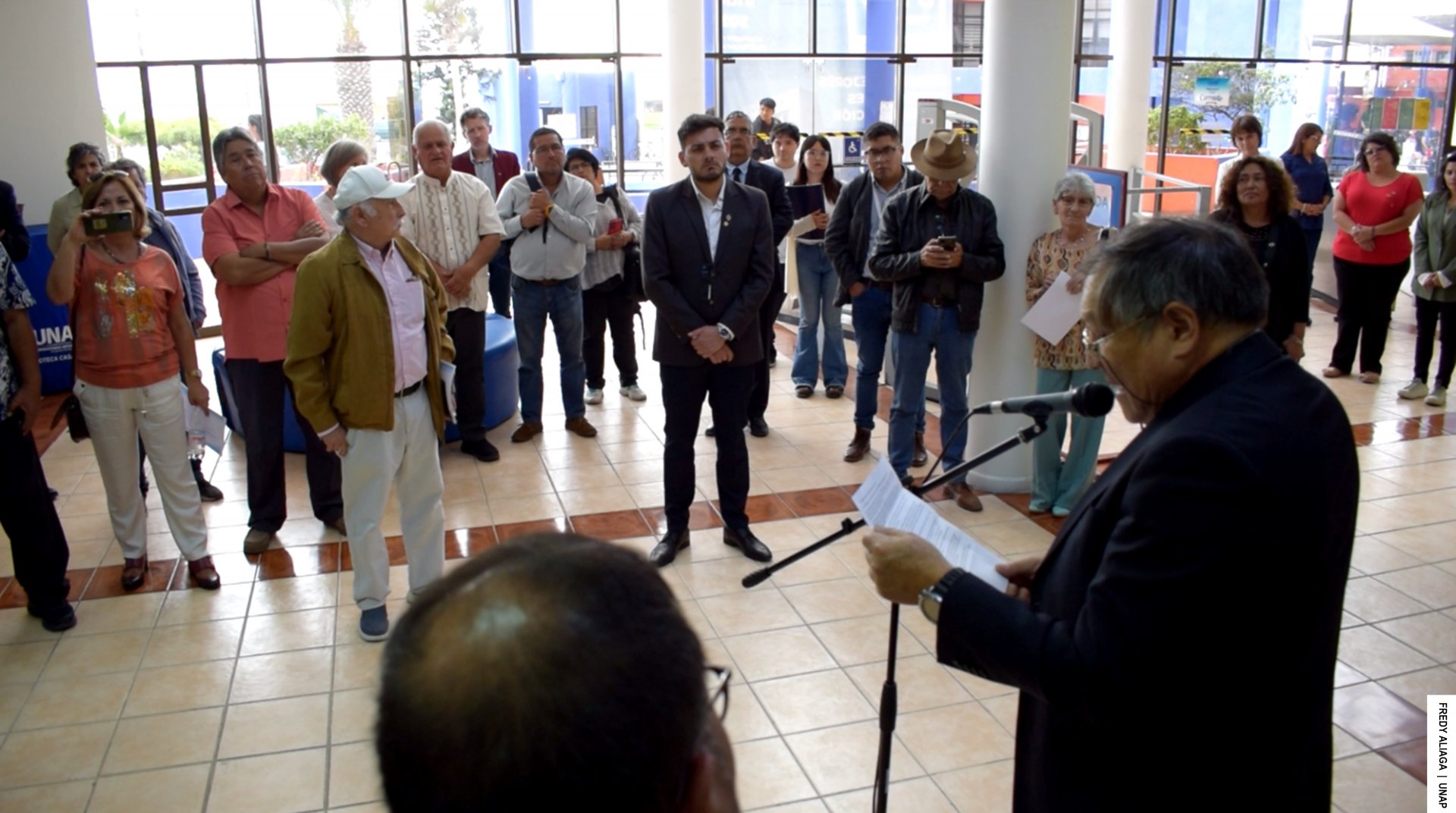 Además, como una manera de testimoniar y reconocer institucionalmente lo ocurrido y que afectó las vidas de cada víctima, la UNAP realizó otra emotiva ceremonia en la sala Óscar Hahn de la Casa Central, en Iquique. En la instancia, el rector entregó a cada afectado y afectada una medalla y un diploma de memoria histórica.