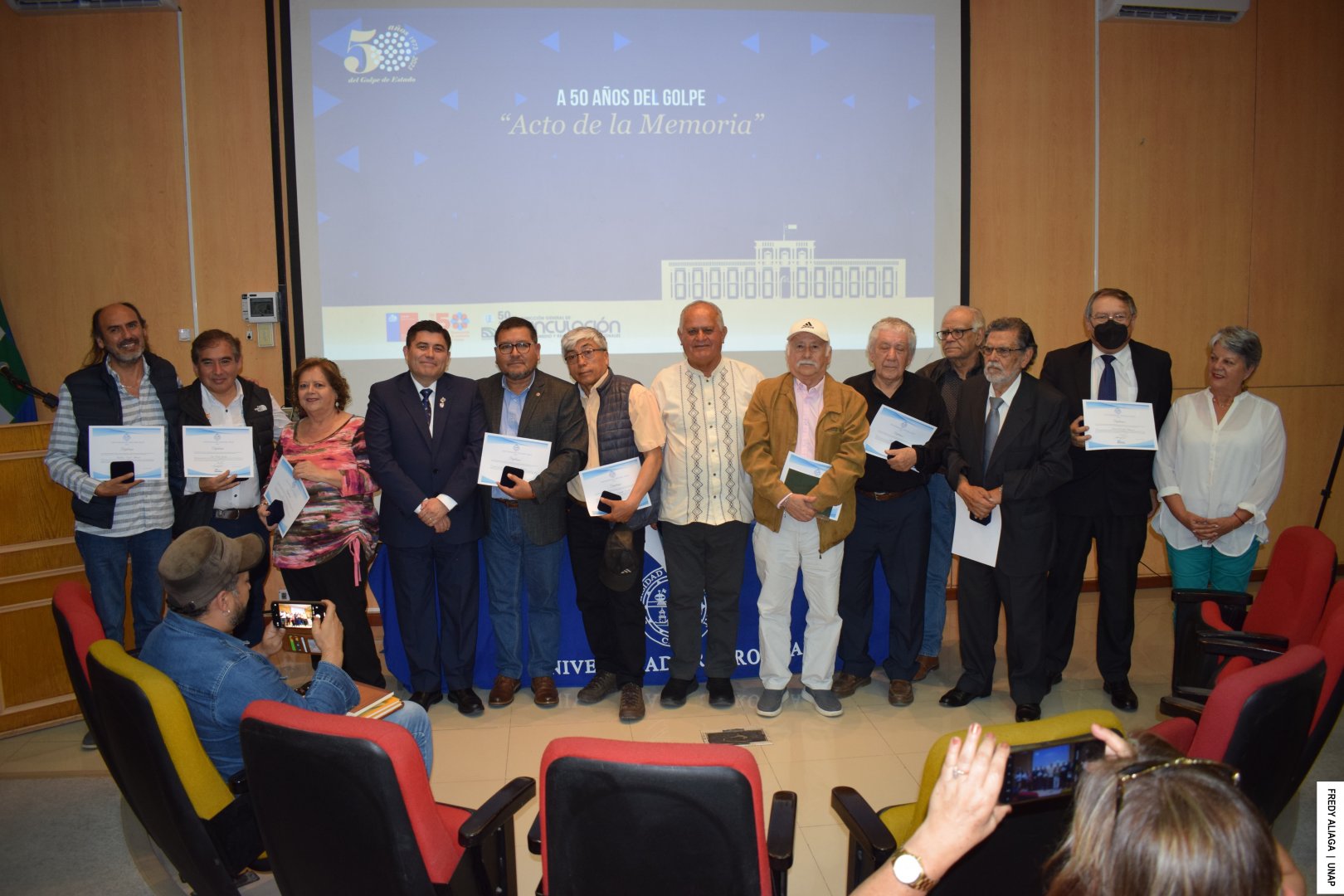 “Agradecer al rector, don Alberto Martínez y a su equipo, por esta iniciativa de la Universidad. Nos hizo recordar un pasado que fue muy doloroso (…) Han pasado casi 40 años y estoy aquí, donde empecé mi formación universitaria. Aunque me truncaron el futuro universitario en ese momento, después pude completar una carrera. La realicé fuera del país”, comentó.