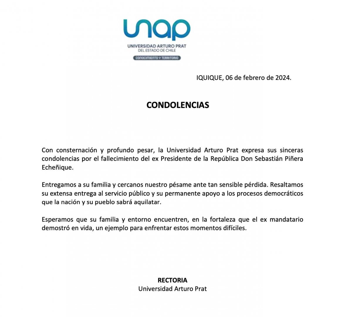 Condolencias ante la muerte del ex Presidente Sebastián Piñera Echeñique