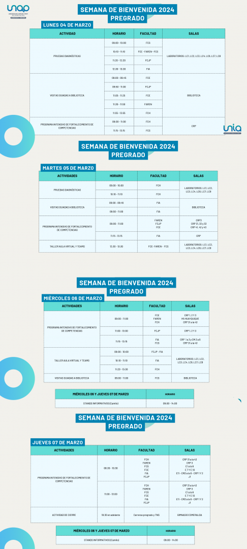 Al respecto Camila Ramírez, profesional del área de Programas Específicos de la UNIA, precisó que “Esta semana pretende que el estudiantado se sienta parte de la Institución y conozca tanto las distintas áreas académicas y administrativas con las que trabajarán, a sus pares y directoras/es de carreras. Hemos organizado actividades desde lo académico, pero también que les dan la posibilidad de compartir con otros estudiantes para bajar la ansiedad de esta etapa de ingreso a la educación superior. Por ello invito a todos el estudiantado a participar, disminuir así su nerviosismo, y que lo vean además como una gran oportunidad de aprendizaje al interactuar con tutores que son estudiantes de cursos superiores y que los orientarán a como sobrellevar este proceso de adaptación”