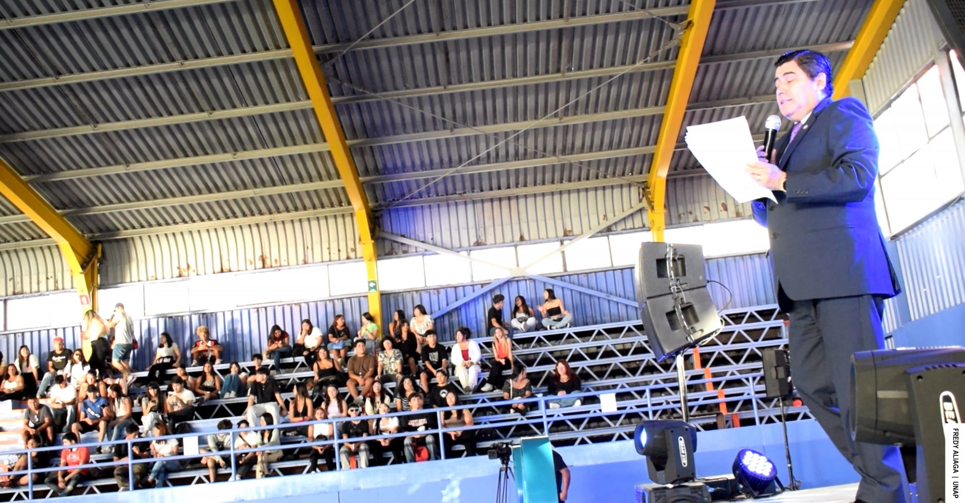 La Universidad Arturo Prat (UNAP) realizó la actividad de cierre de la semana de inducción para estudiantes de primer año de pregrado, y carreras técnicas, con un evento recreativo que incluyó música, premios y la presentación del comediante Iván Cabello. La instancia se realizó en el gimnasio de la Casa Central, en Iquique, con la participación del rector Alberto Martínez Quezada, y también el presidente de la Federación de Estudiantes FEDEUNAP, Máximo Sierralta Soto, quienes, respectivamente, a través de emotivos mensajes dieron la bienvenida oficial a los cientos de nuevos alumnos y alumnas.