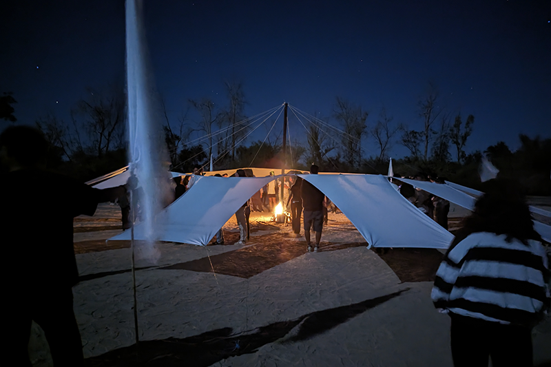 Uno de los encargos desarrollados busca activar el acto creativo de reconocer en el lugar, la materia, identidad y lenguaje en las estructuras del espacio y cuerpos presentes en el contexto natural del desierto. Los estudiantes se identifican con los cuatro elementos utilizados por los griegos para entender la complejidad del mundo natural: Tierra, Agua, Viento y Aire; experimentando, desarrollando, proponiendo y construyendo desde la materia y el recurso, propuestas de diseño que luego expusieron y reflexionaron en un foro abierto como carrera.