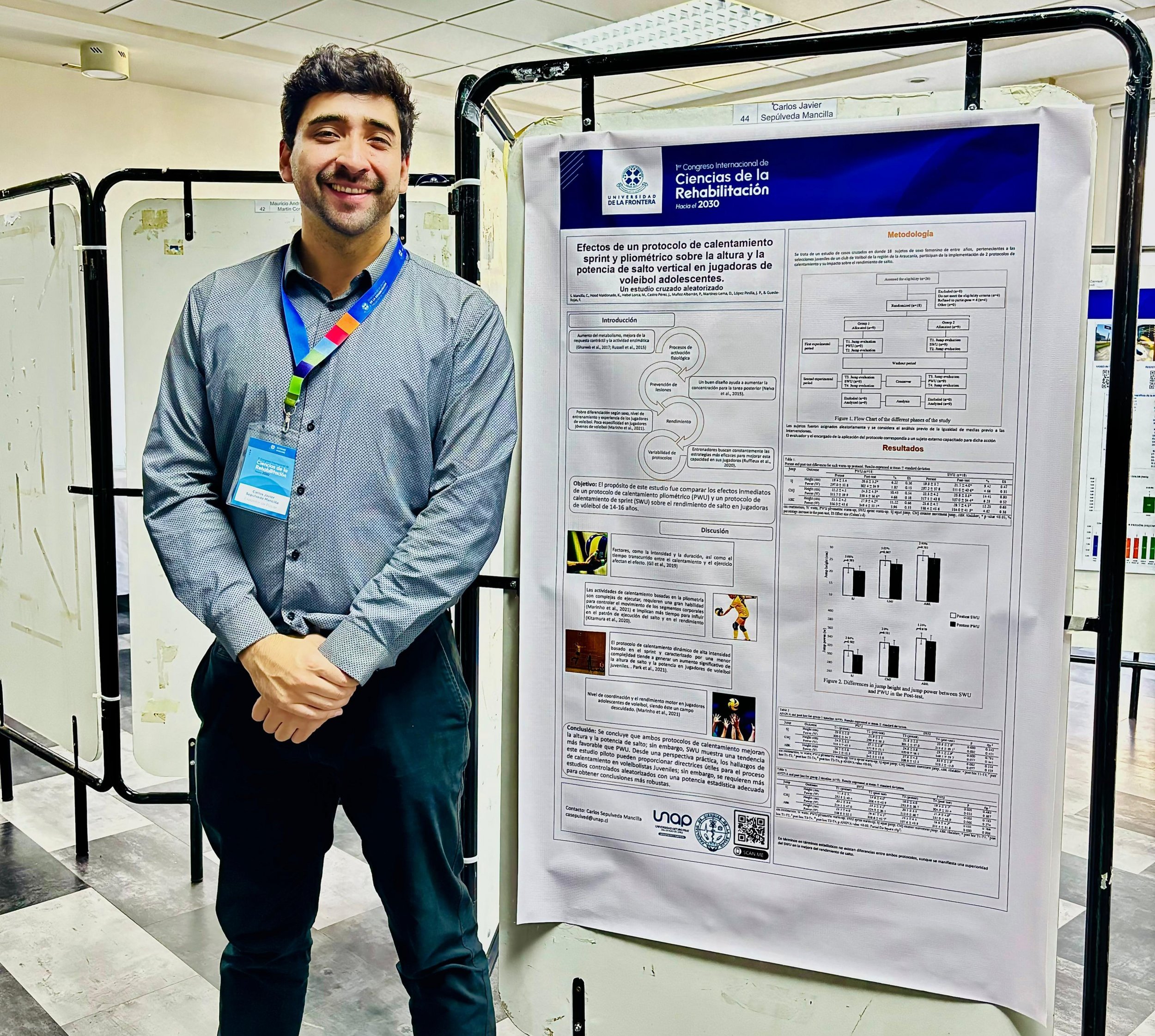 “Efectos de un protocolo de calentamiento sprint y pliométrico sobre la altura y la potencia de salto vertical en jugadoras de vóleibol adolescentes. Un estudio cruzado aleatorizado”, fue el título del trabajo presentado por el Jefe de carrera de Kinesiología de la Universidad Arturo Prat Sede Victoria, Carlos Sepúlveda, en el “1er Congreso Internacional de Ciencias de la Rehabilitación: Hacia el 2030”, celebrado en la Universidad de La Frontera, en Temuco.