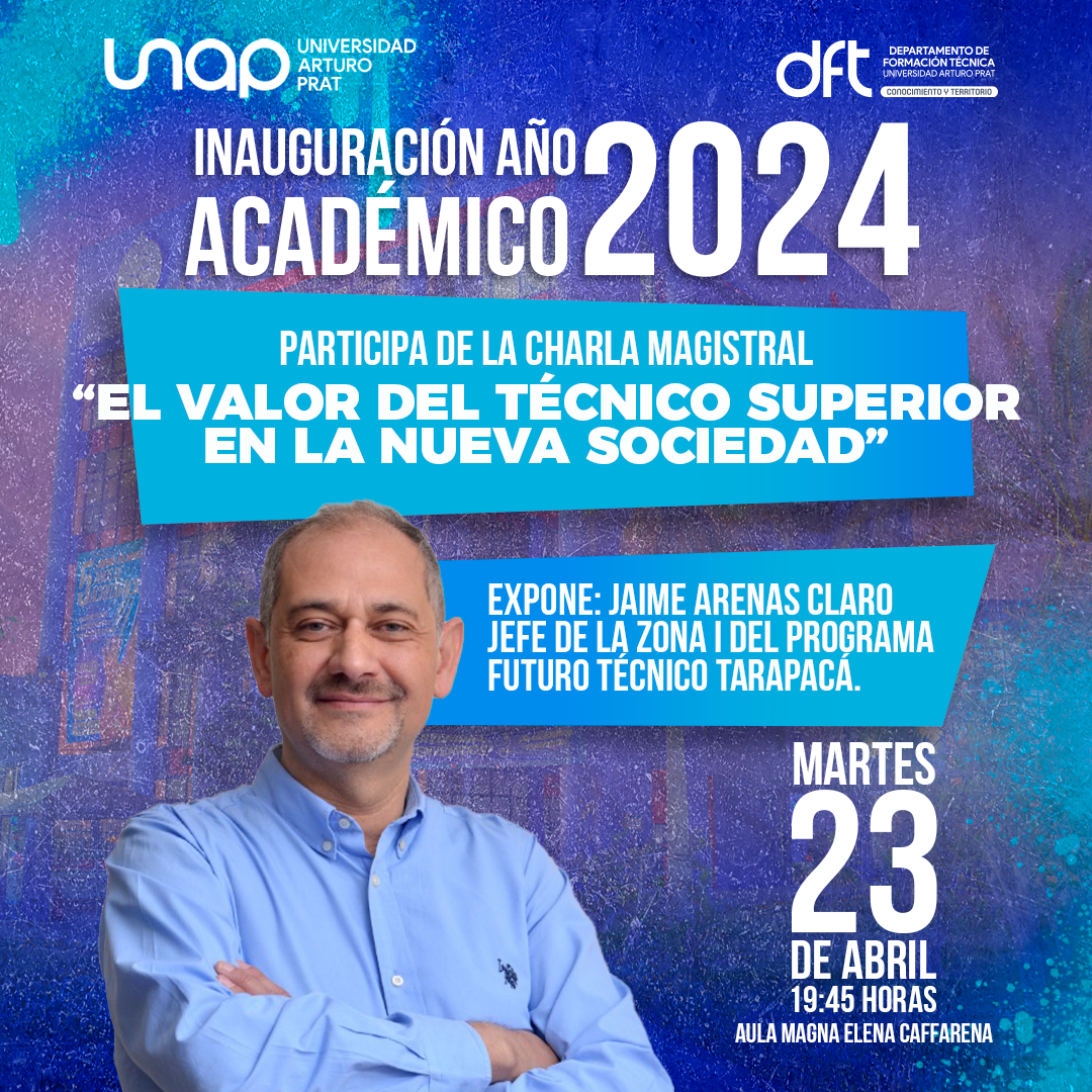 La ceremonia contará con la destacada presencia del Jefe de la Zona I del Programa Futuro Técnico del Ministerio de Educación (MINEDUC), ejecutado por consultora educacional Conexium, Sr. Jaime Arenas Claro, quien dictará la charla magistral titulada "El valor del Técnico Superior en la nueva sociedad". En su exposición, el Sr. Arenas Claro abordará la importancia de la formación técnica en el contexto actual, destacando el rol fundamental que desempeñan los técnicos superiores en el desarrollo económico y social del país.